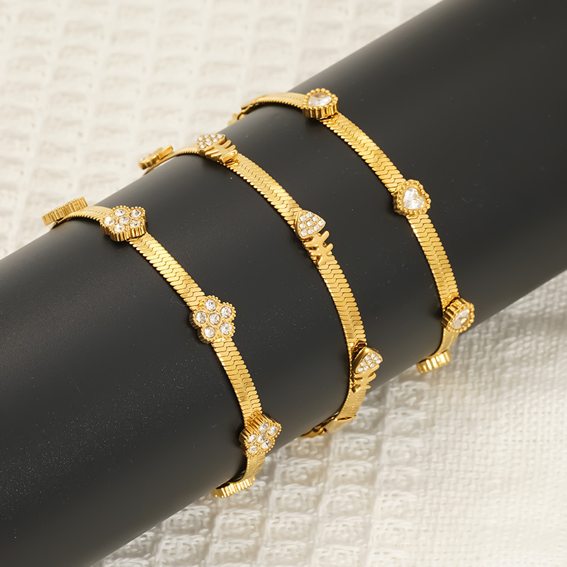 Bracciale gioielli in acciaio inossidabile, 304 acciaio inox, stili diversi per la scelta & per la donna & con strass, dorato, Venduto da PC