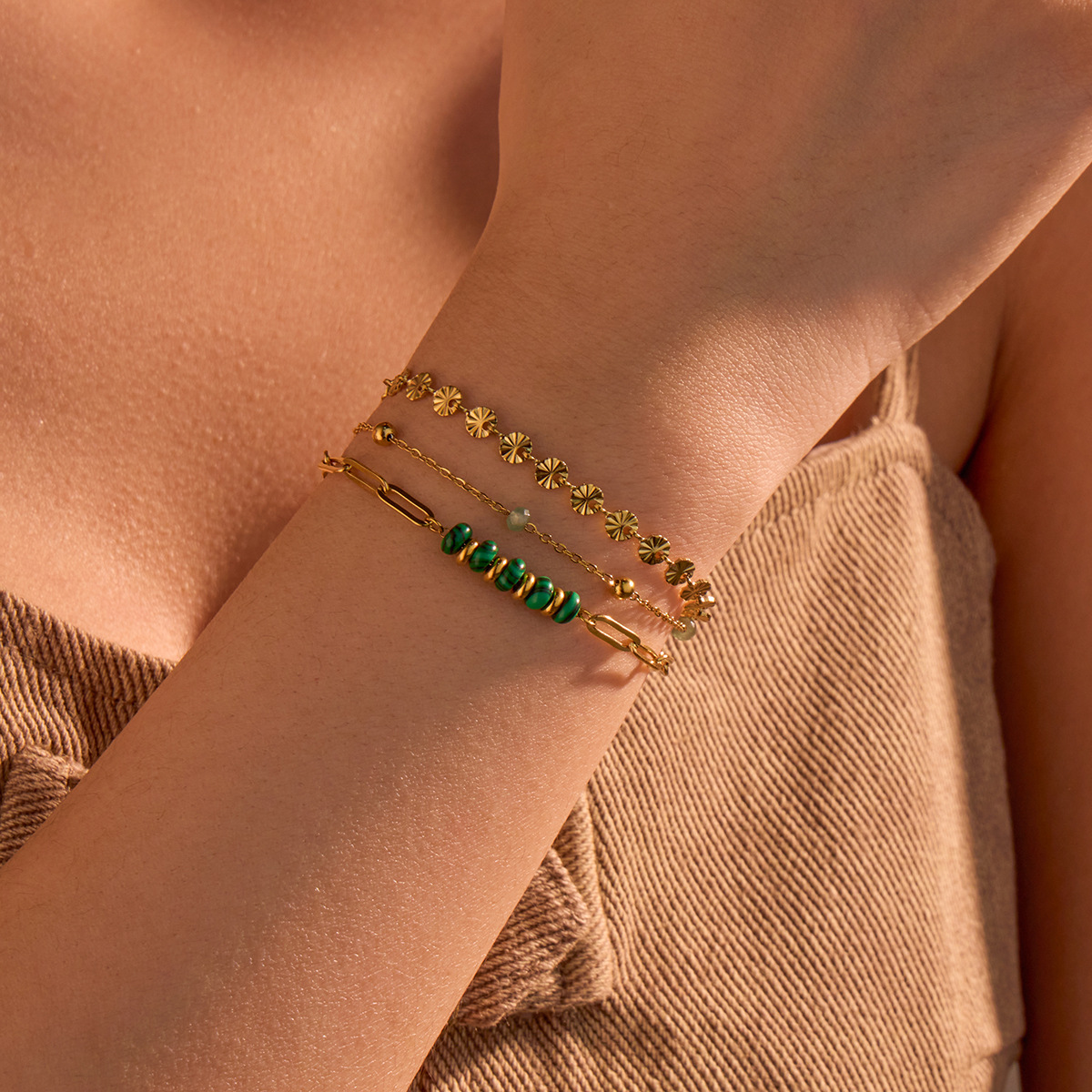 Bracciale gioielli in acciaio inossidabile, 304 acciaio inox, with Pietra naturale, Placcato oro 18K, tre strati & gioielli di moda & per la donna, Venduto da PC