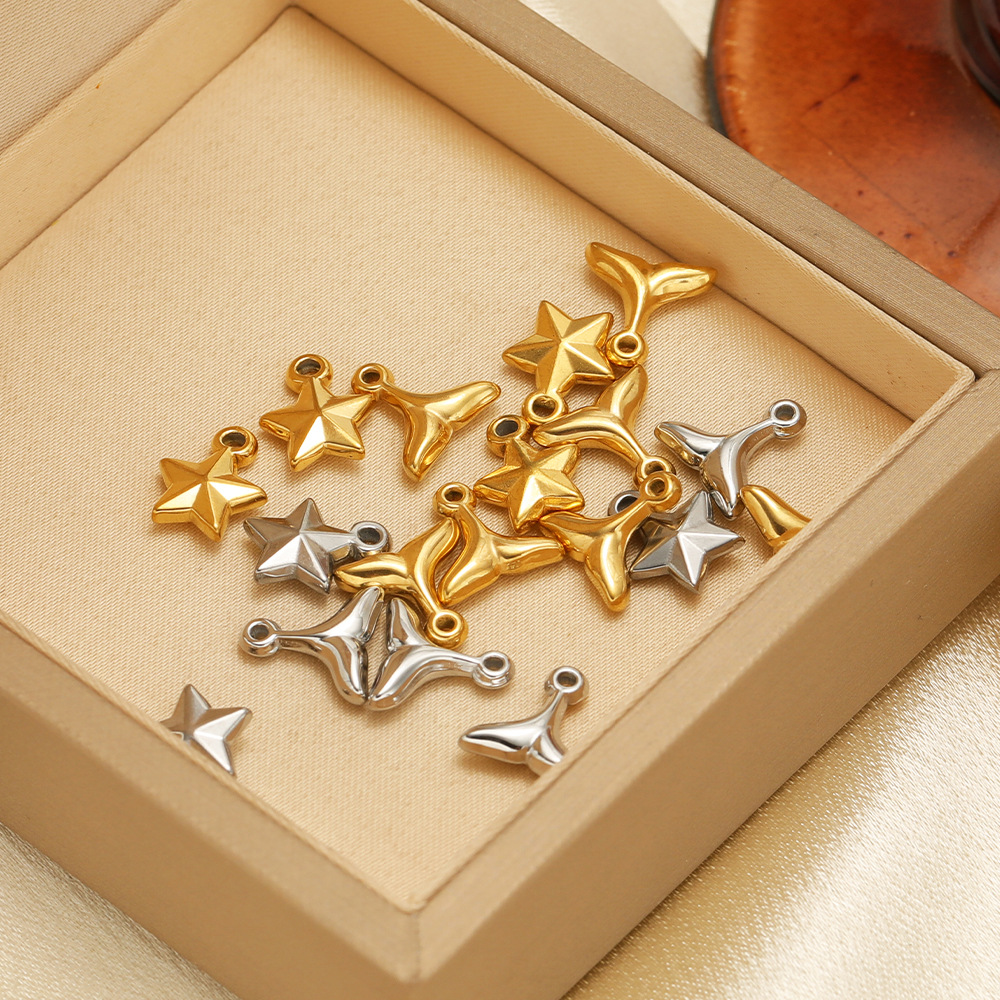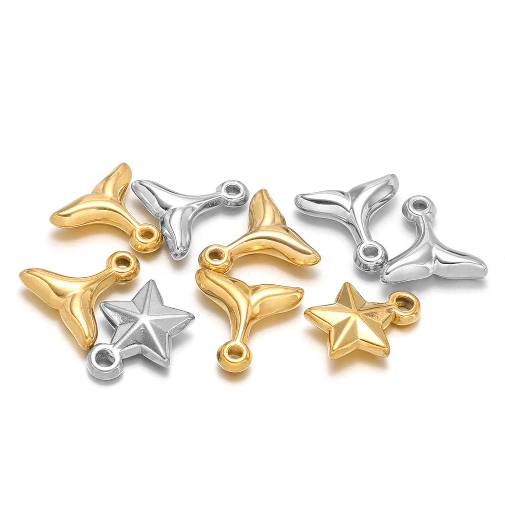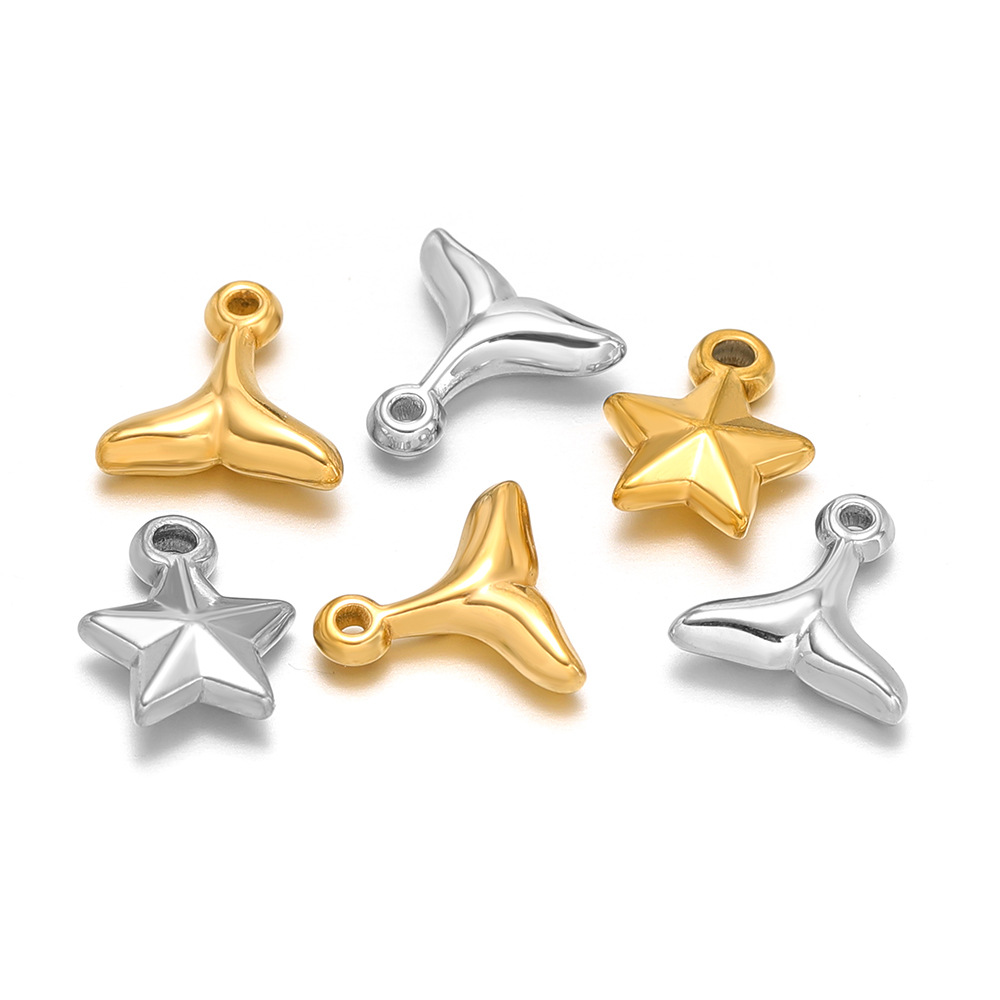 1:10*10mm small fish tail inner 1.2mm single hole gold2:10*10mm small fish tail inner 1.2mm single hole steel color3:9*11mm small five-pointed star inner 1.8mm single hole gold4:9*11mm small five-pointed star inner 1.8mm single hole steel color