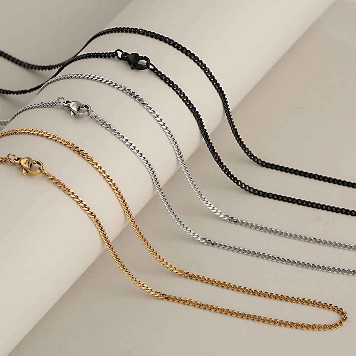 1:Gold (single pendant)2:Silver (single pendant)3:Black (single pendant)4:Gold 3mm square pearl chain 60cm5:Silver 3mm square pearl chain 60cm6:Black 3mm square pearl chain 60cm7:Gold 2mm grinding chain 55cm8:Silver 2mm grinding chain 55cm9:Black 2mm grinding chain 55cm