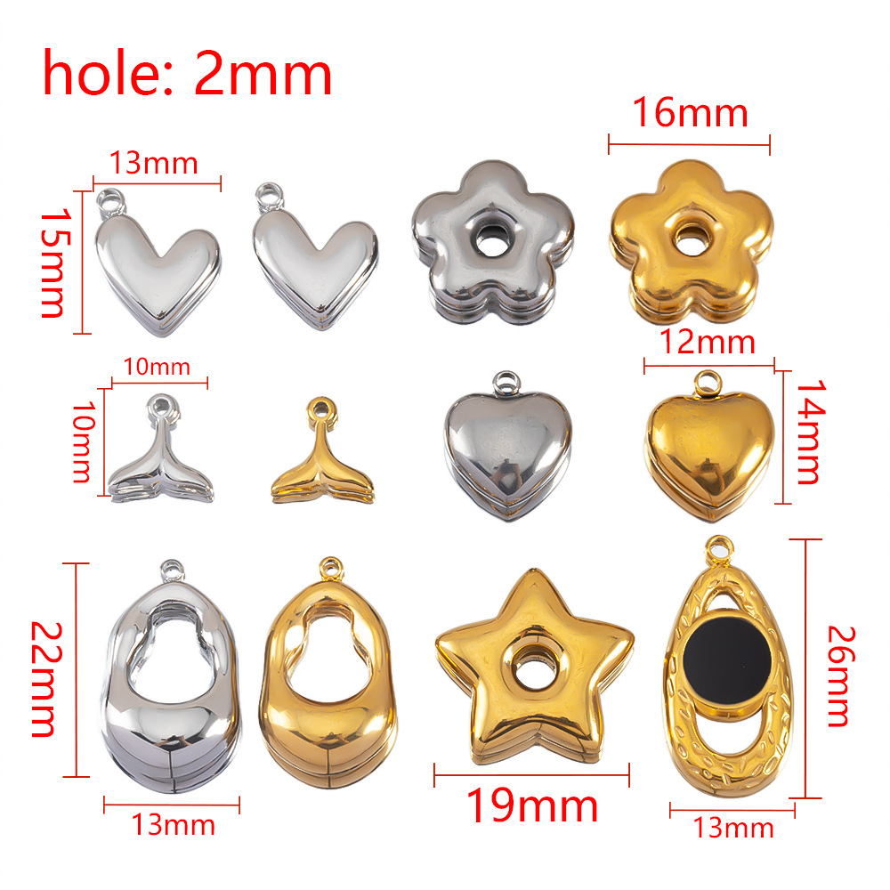 1:Gold flower shape2:Golden fish tail3:Golden heart4:Golden water drop gourd5:Golden stars6:Steel color flower shape7:Steel color fishtail8:Steel color peach heart9:Steel color water drop gourd