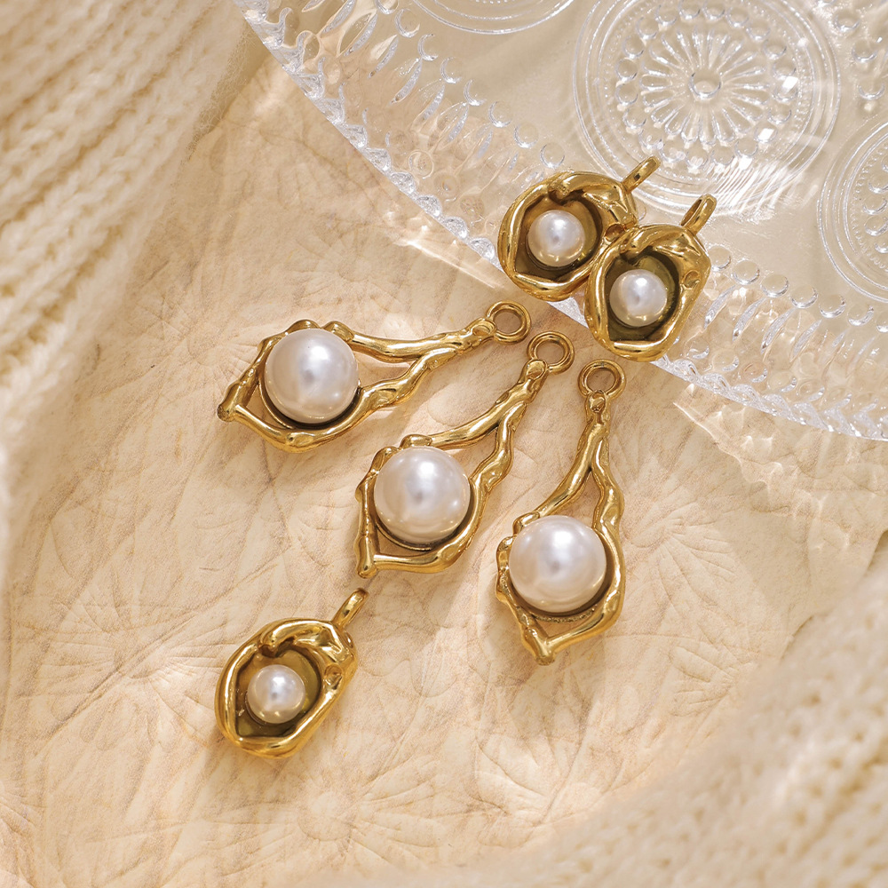 Ciondoli gioielli in acciaio inox, 304 acciaio inox, with perla in plastica, placcato color oro, DIY, dorato, 10PC/borsa, Venduto da borsa