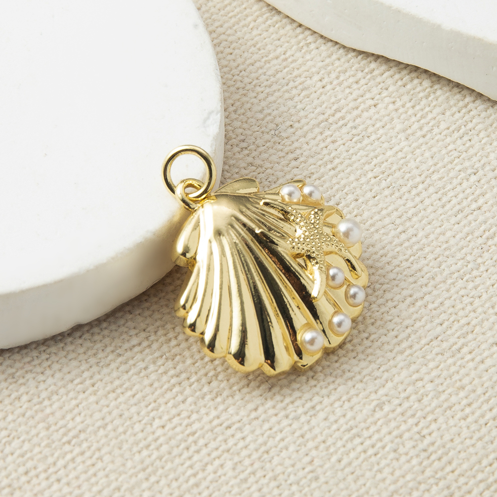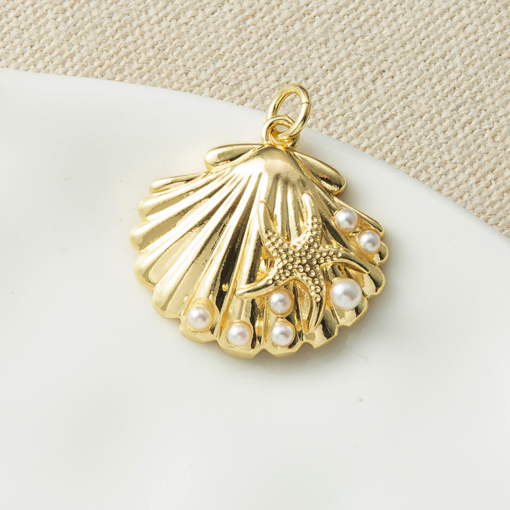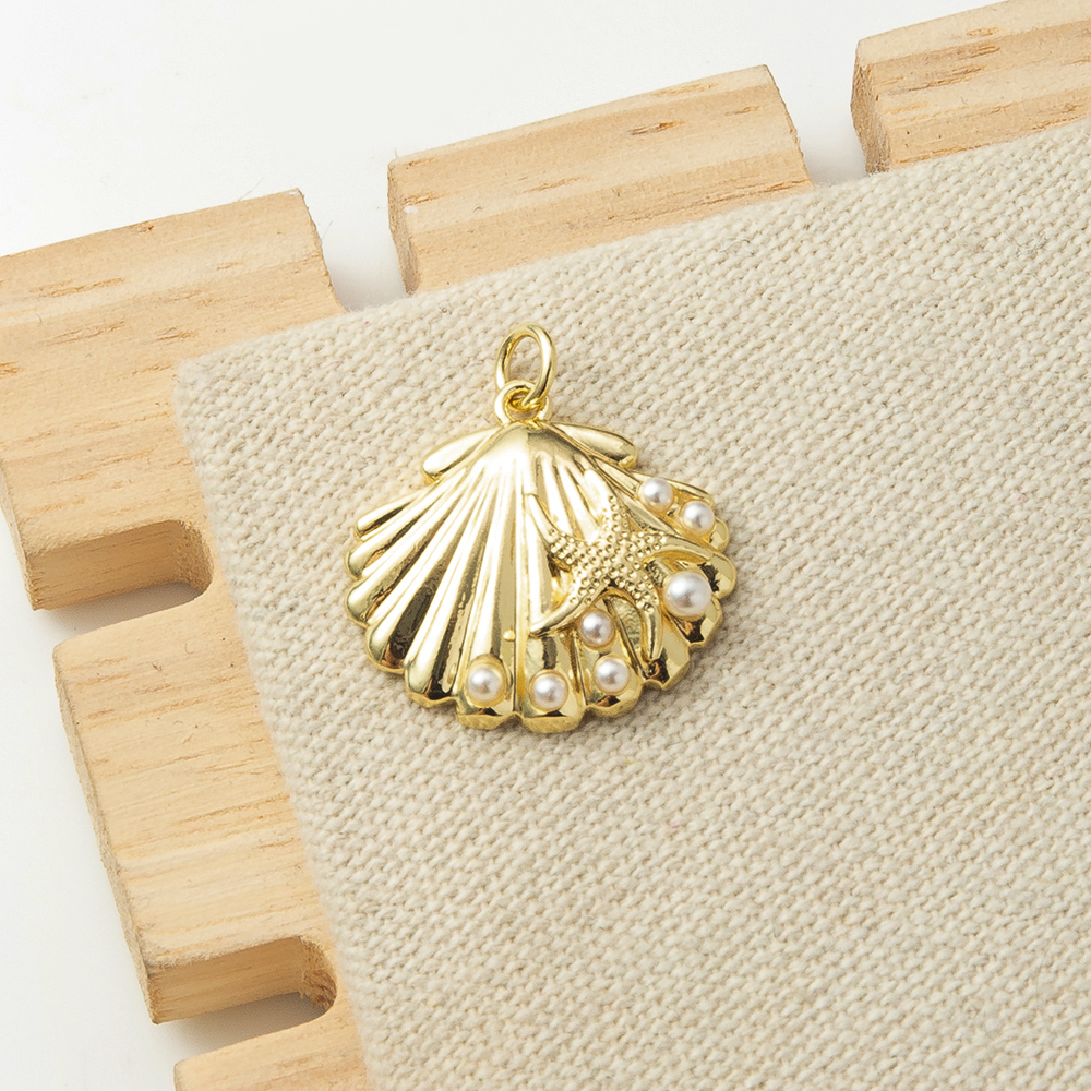 Monili d'ottone Ciondoli, ottone, with perla in plastica, Conchiglia, placcato, gioielli di moda, dorato, assenza di nichel,piombo&cadmio, 21.10x4.30x23mm, Venduto da PC