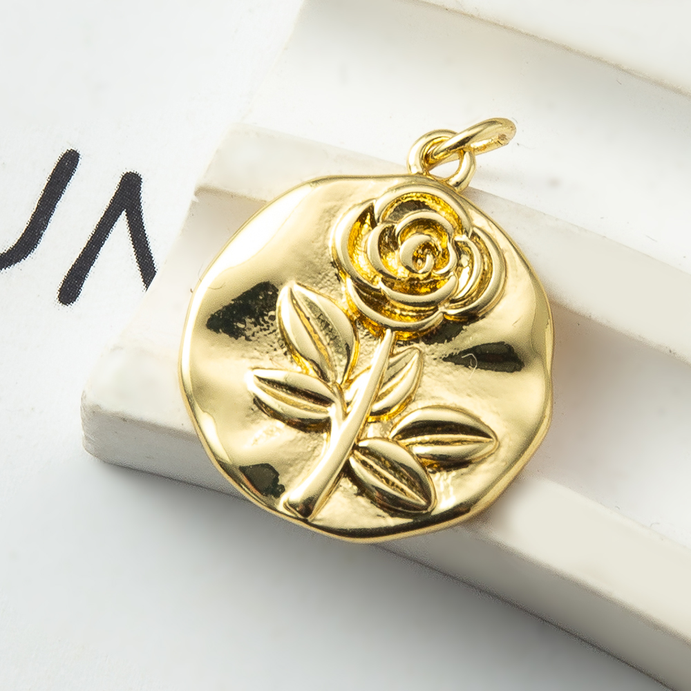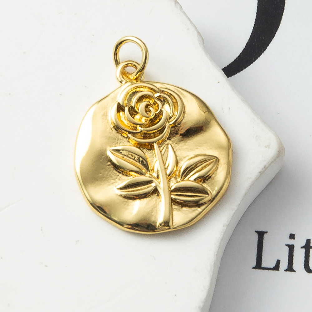 Monili d'ottone Ciondoli, ottone, Rose, placcato, gioielli di moda, nessuno, assenza di nichel,piombo&cadmio, 18.16x2.60x24.50mm, Venduto da PC