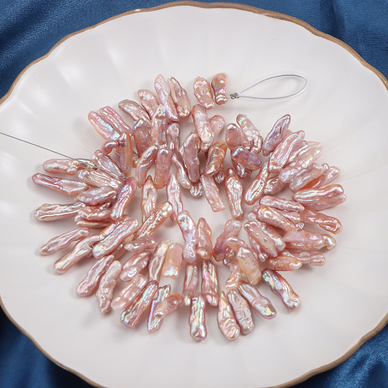Biwa coltivate in acqua dolce Perla, perla d'acquadolce coltivata naturalmente, DIY & superiore forato, colore originale, beads width 5-6mm, length 14-17mm, Foro:Appross. 0.7mm, Appross. 100PC/filo, Venduto per Appross. 40 cm filo