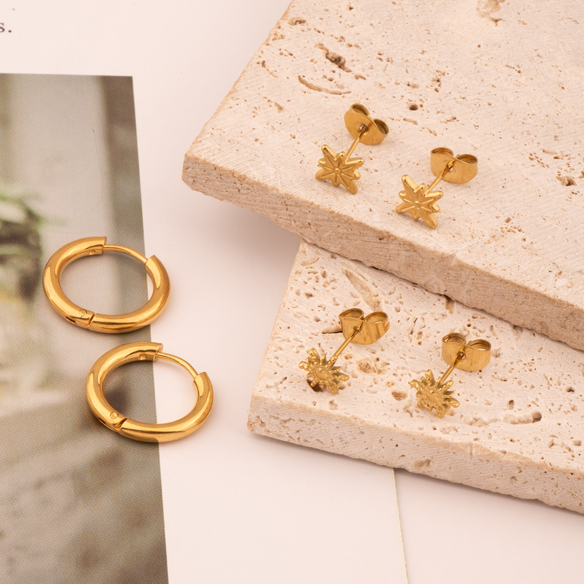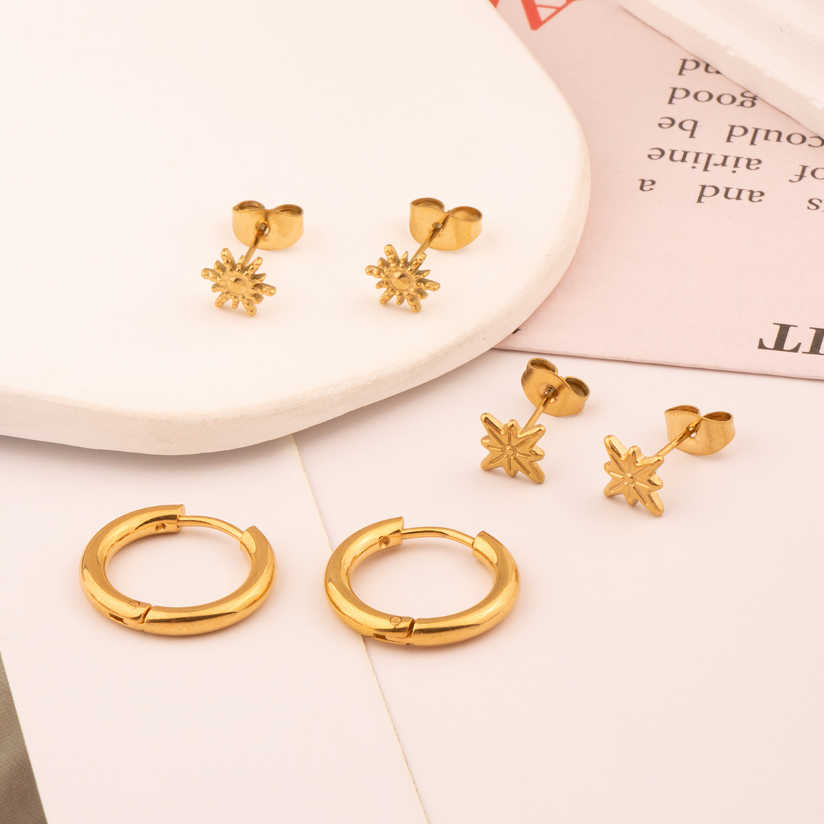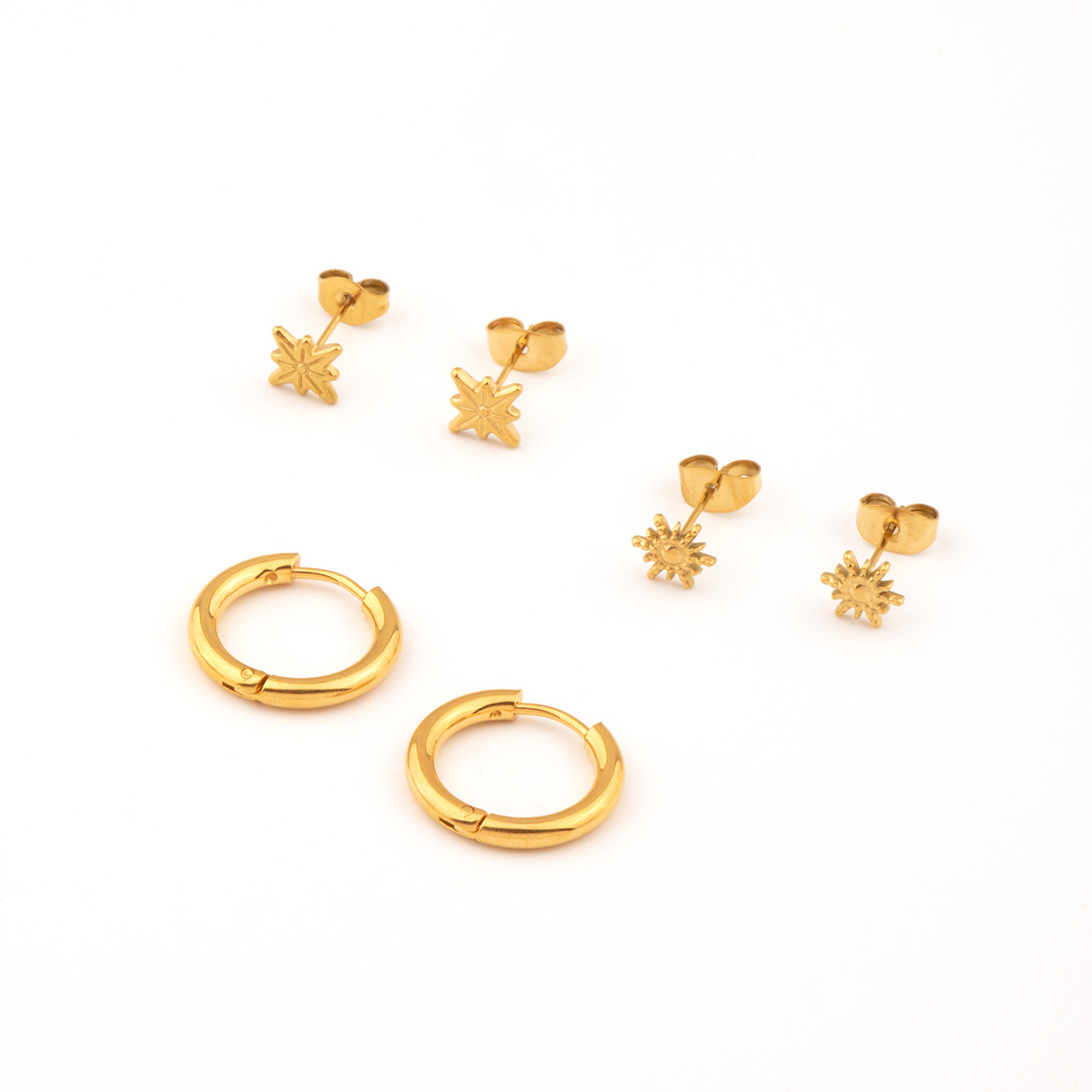 Orecchini in acciaio inossidabile, 304 acciaio inox, placcato color oro, gioielli di moda, dorato, 3Pairspaio/set, Venduto da set