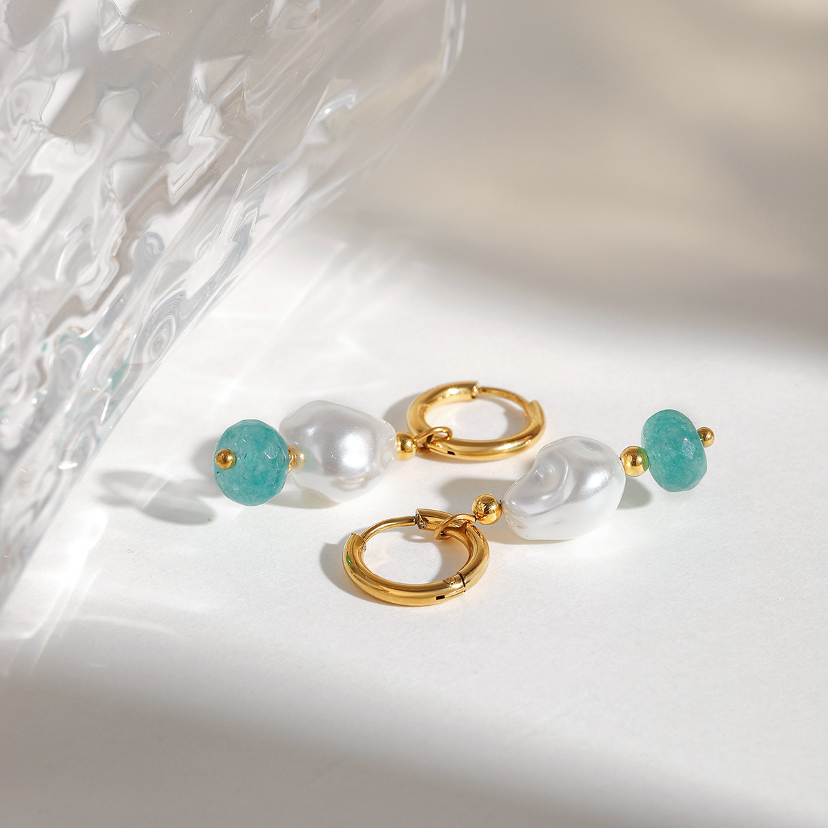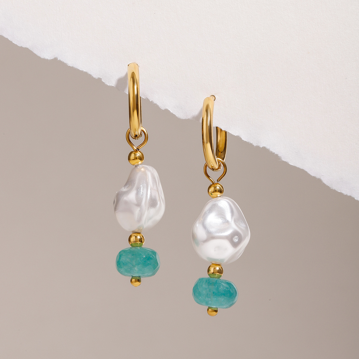 Orecchino di goccia in acciaio inox, 304 acciaio inox, with Pietra naturale & perla in plastica, placcato color oro, per la donna, Venduto da coppia