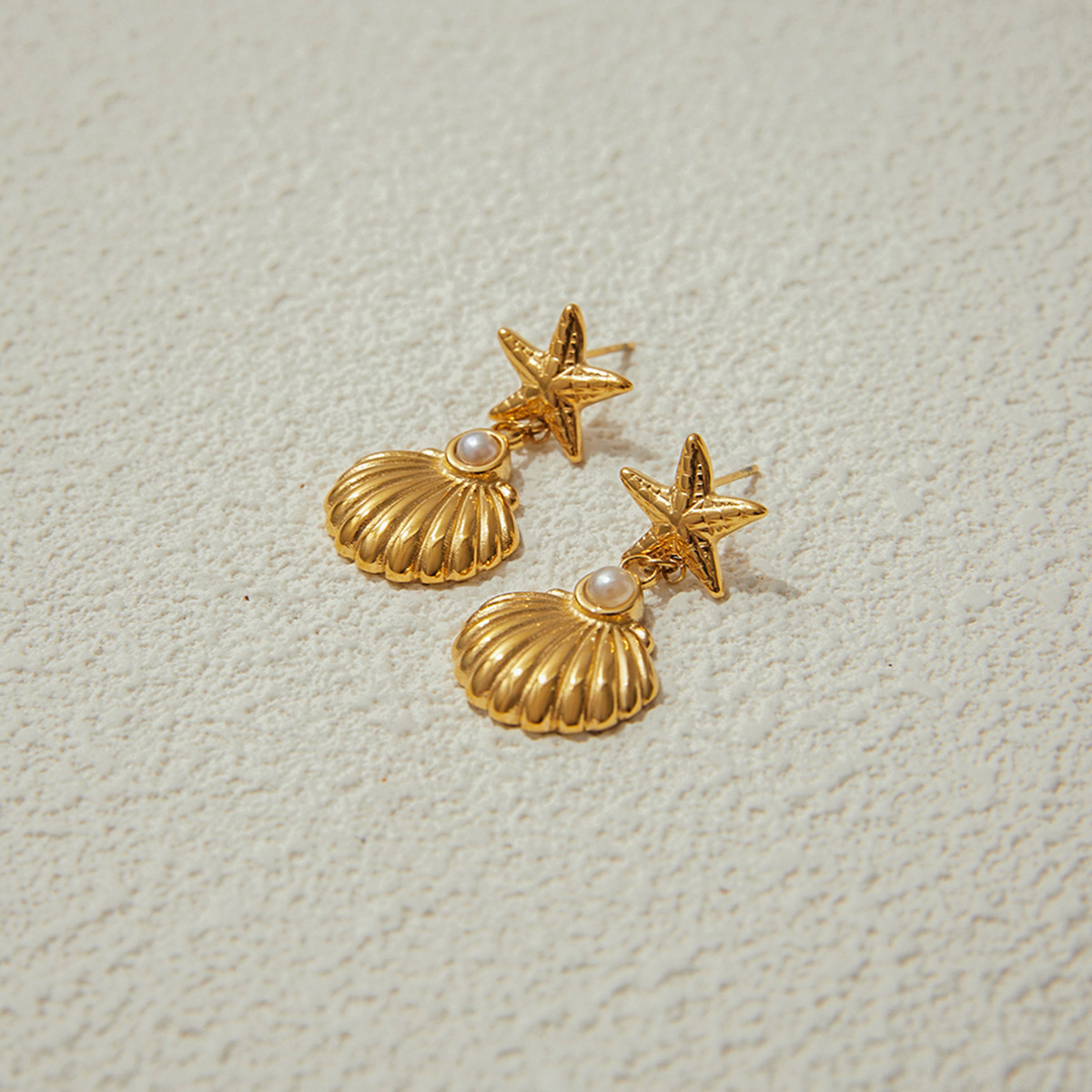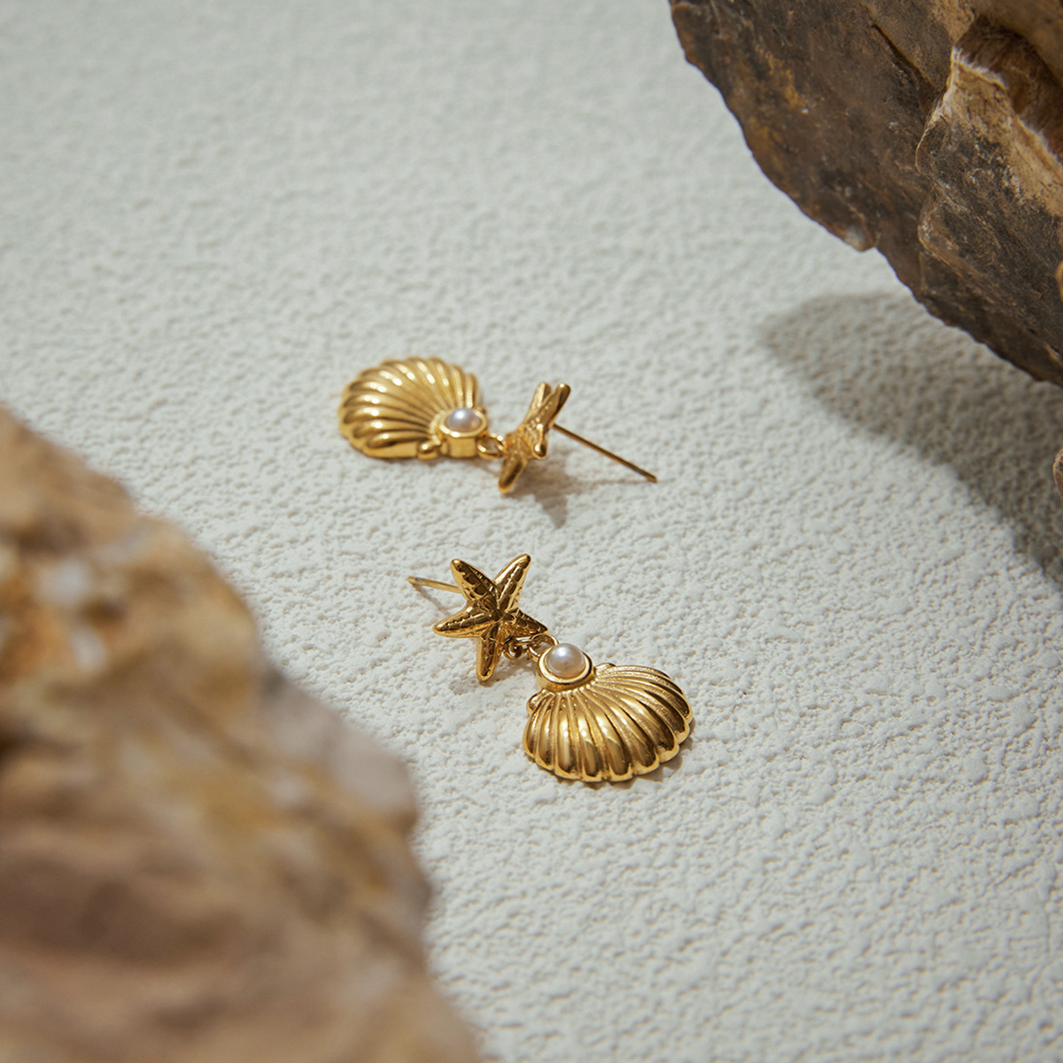 Orecchino di goccia in acciaio inox, 304 acciaio inox, with Shell Pearl, placcato, gioielli di moda & per la donna, dorato, Venduto da coppia