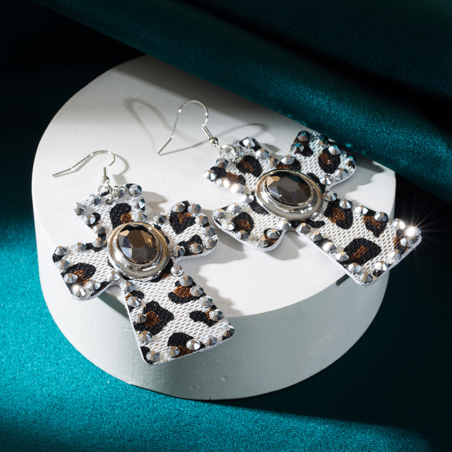 Orecchini in strass, lega in zinco, with PU, Croce, gioielli di moda & per la donna & con strass, nessuno, 83x46mm, Venduto da coppia