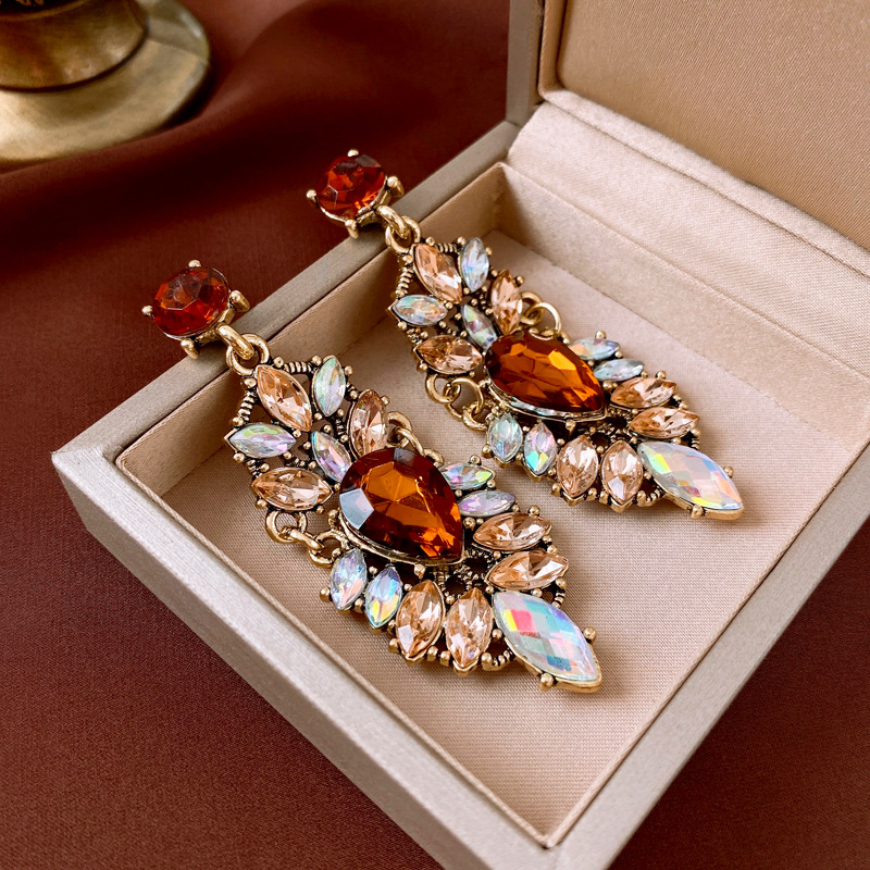 Orecchini in strass, lega in zinco, gioielli di moda & per la donna & con strass, multi-colore, 74x27mm, Venduto da coppia