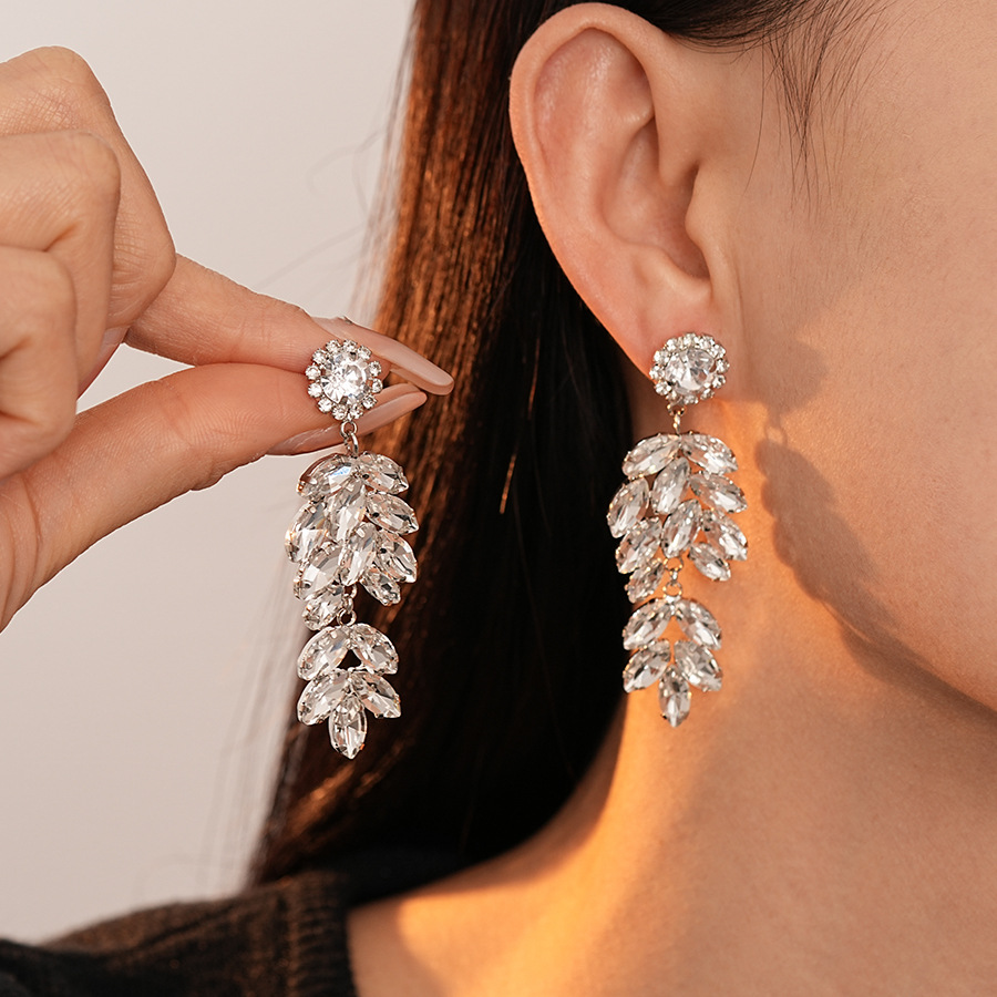 Orecchini in strass, ottone, granograno, gioielli di moda & per la donna & con strass, argento, 63x21mm, Venduto da coppia