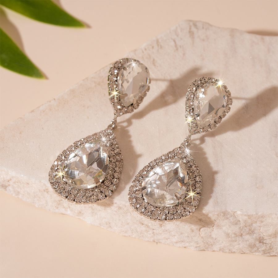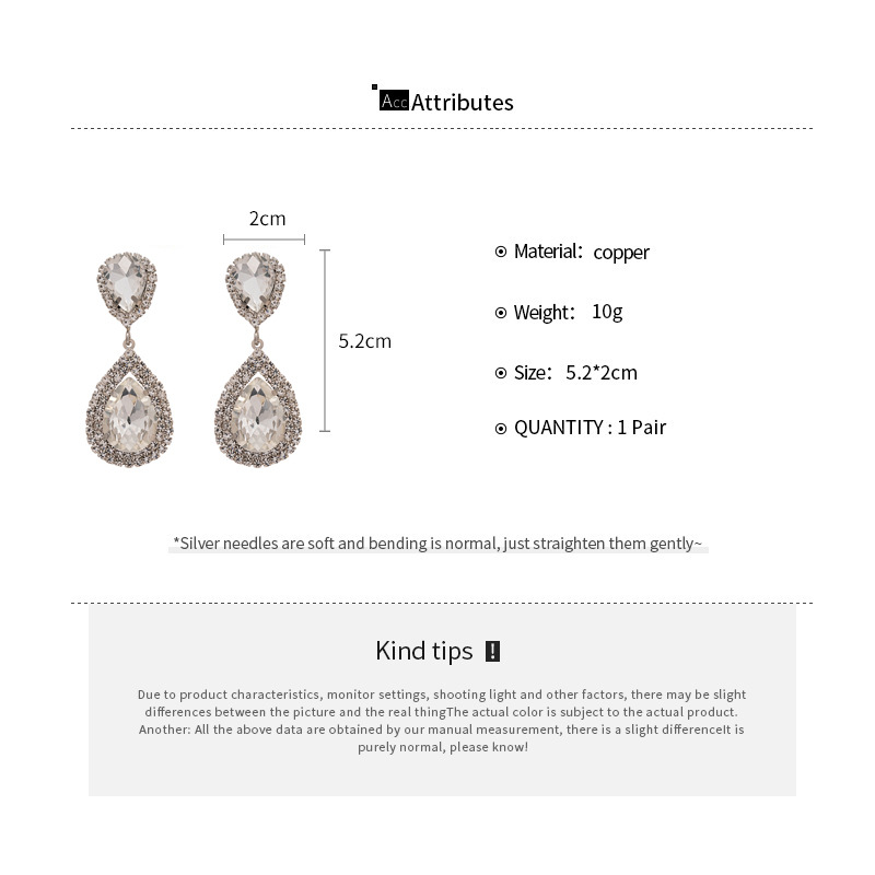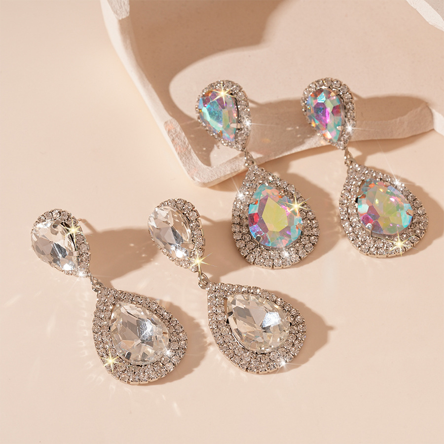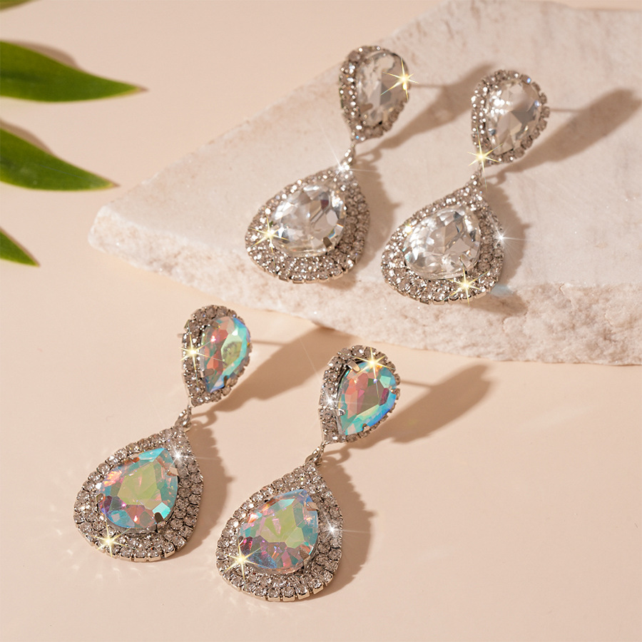 1:Silver needle-silver diamond drop earrings2:Silver needle-colored diamond drop earrings