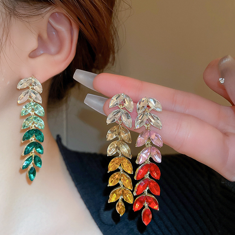 1:Silver Needle-purple leaf tassel earrings2:Silver Needle-yellow leaf tassel earrings3:Silver Needle-red leaf tassel earrings4:Silver Needle-green leaf tassel earrings