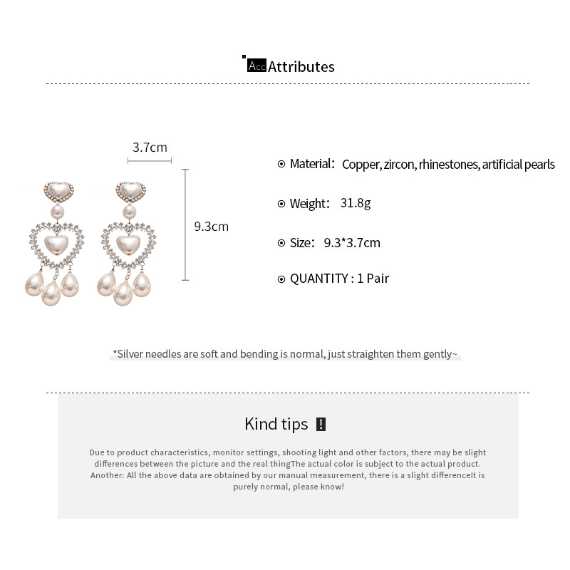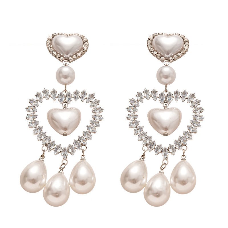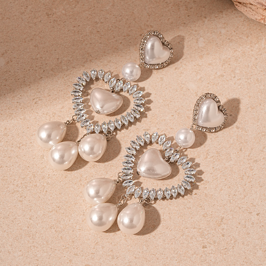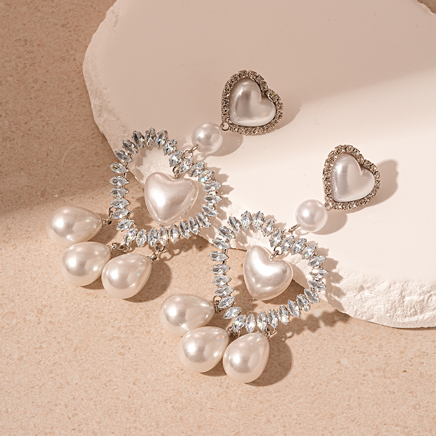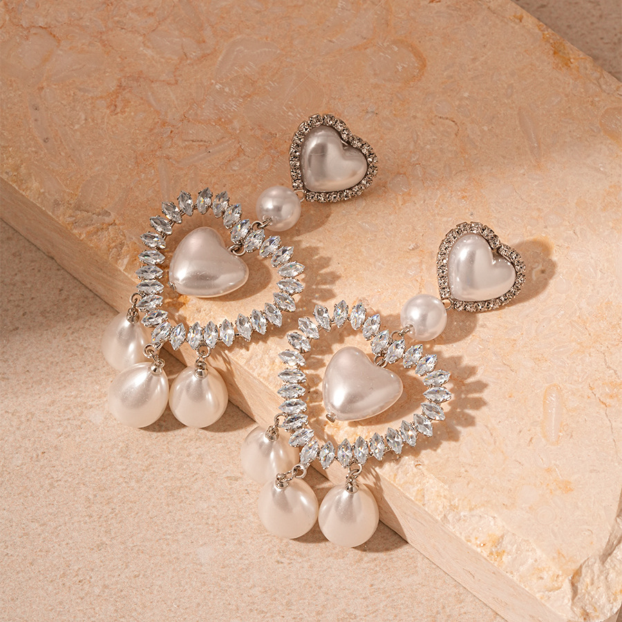 Orecchini in strass, ottone, with cubico zircone & perla in plastica, Cuore, per la donna & con strass & cavo, argento, Venduto da coppia
