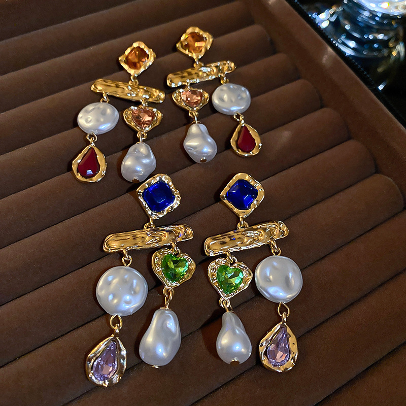 1:Silver Needle-blue diamond pearl earrings2:Silver Needle-champagne diamond pearl earrings