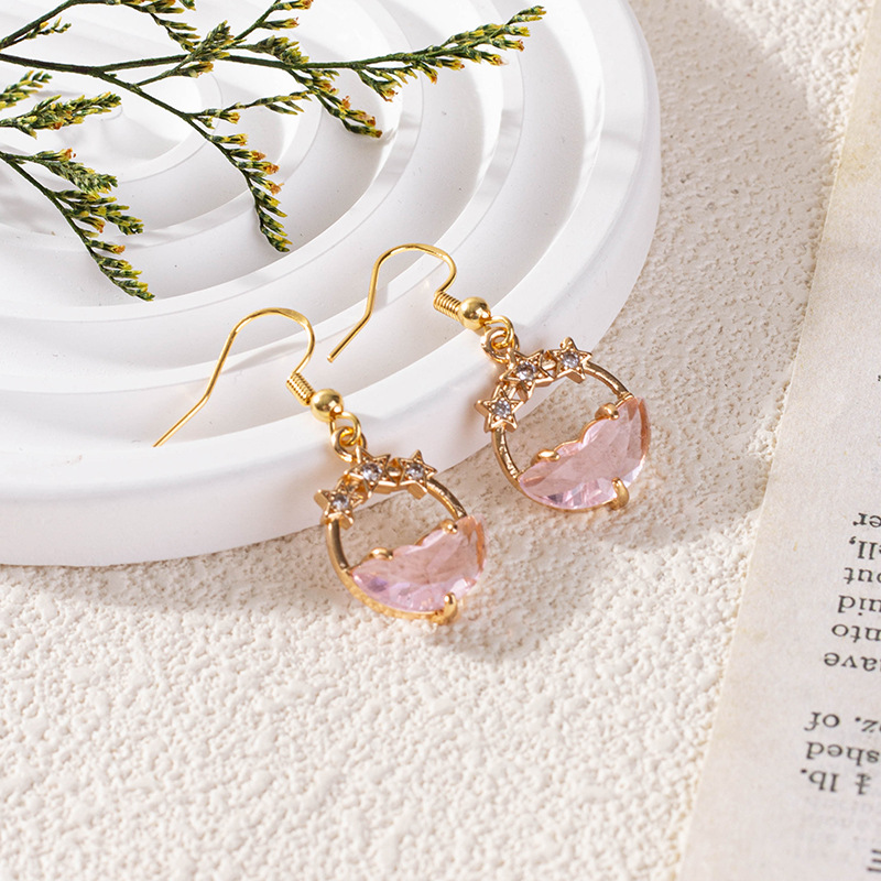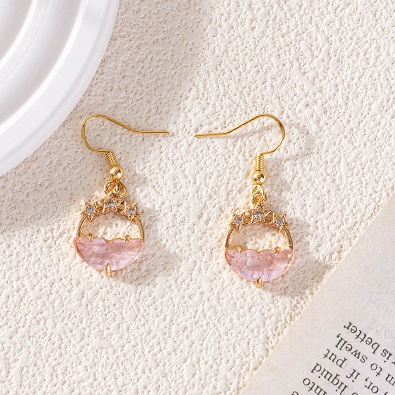 Orecchini quarzo naturale, ottone, with quarzo rosa, placcato, per la donna & con strass, nessuno, assenza di nichel,piombo&cadmio, 15mm, Venduto da coppia