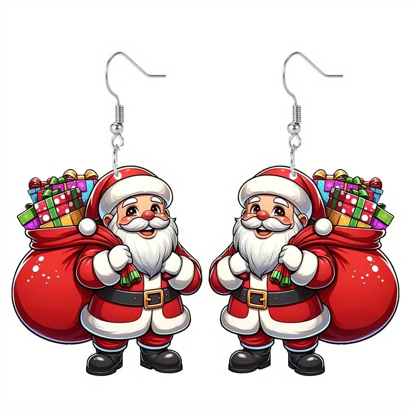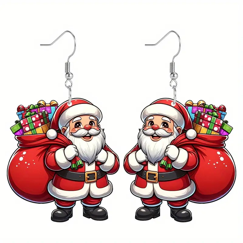 Orecchini di Natale, lega in zinco, with acrilico, Babbo Natale, Stampa, Design natalizio & per la donna, rosso, 30x31mm, Venduto da coppia