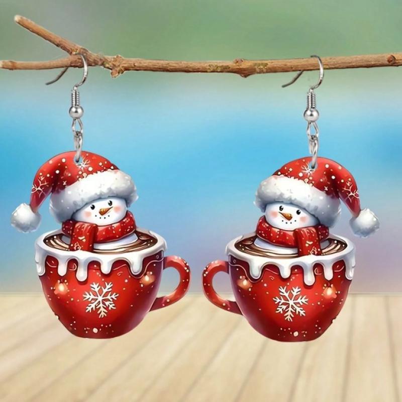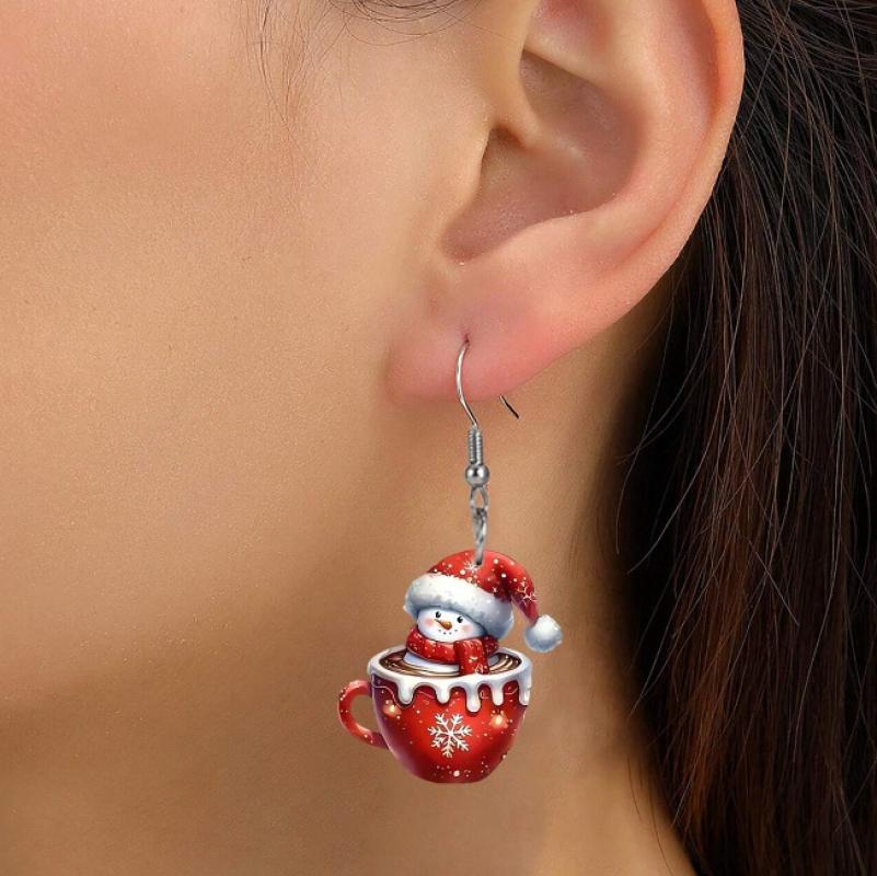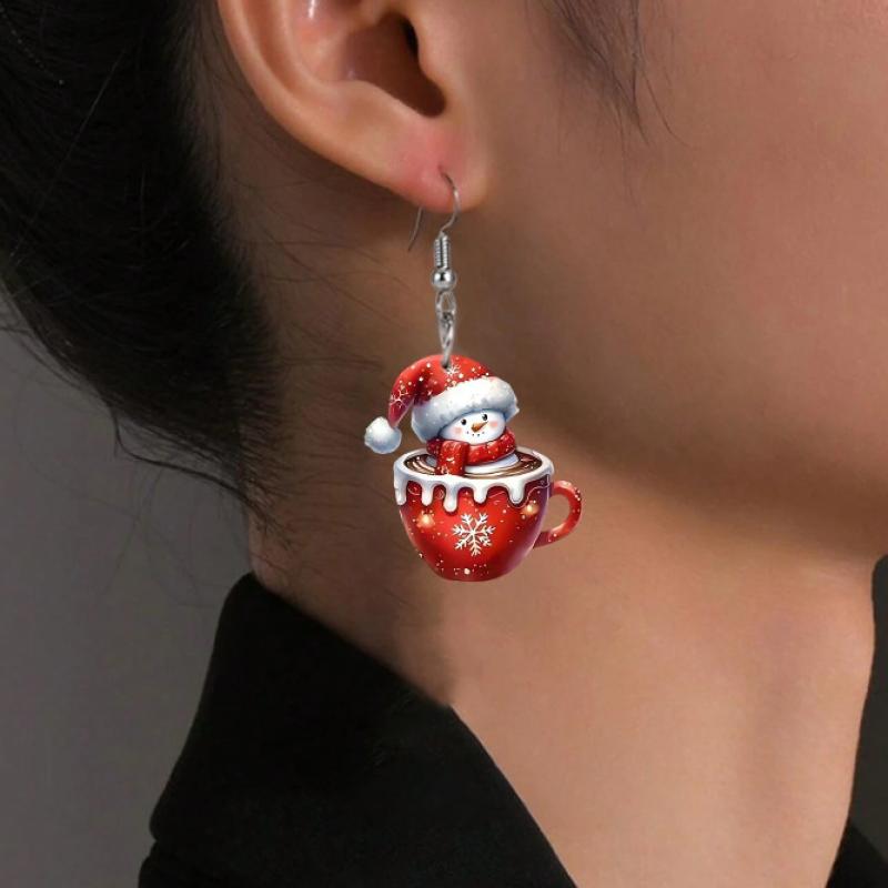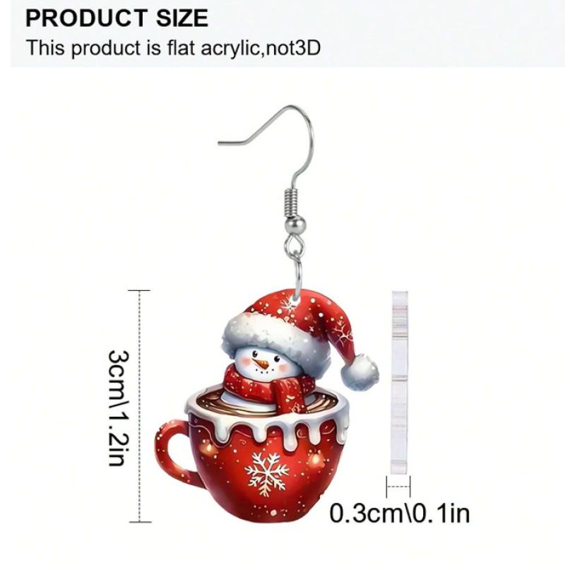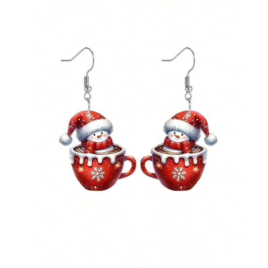 Orecchini di Natale, acrilico, with 304 acciaio inox, Tazza, Stampa, Design natalizio & per la donna & a due lati, rosso, Venduto da coppia