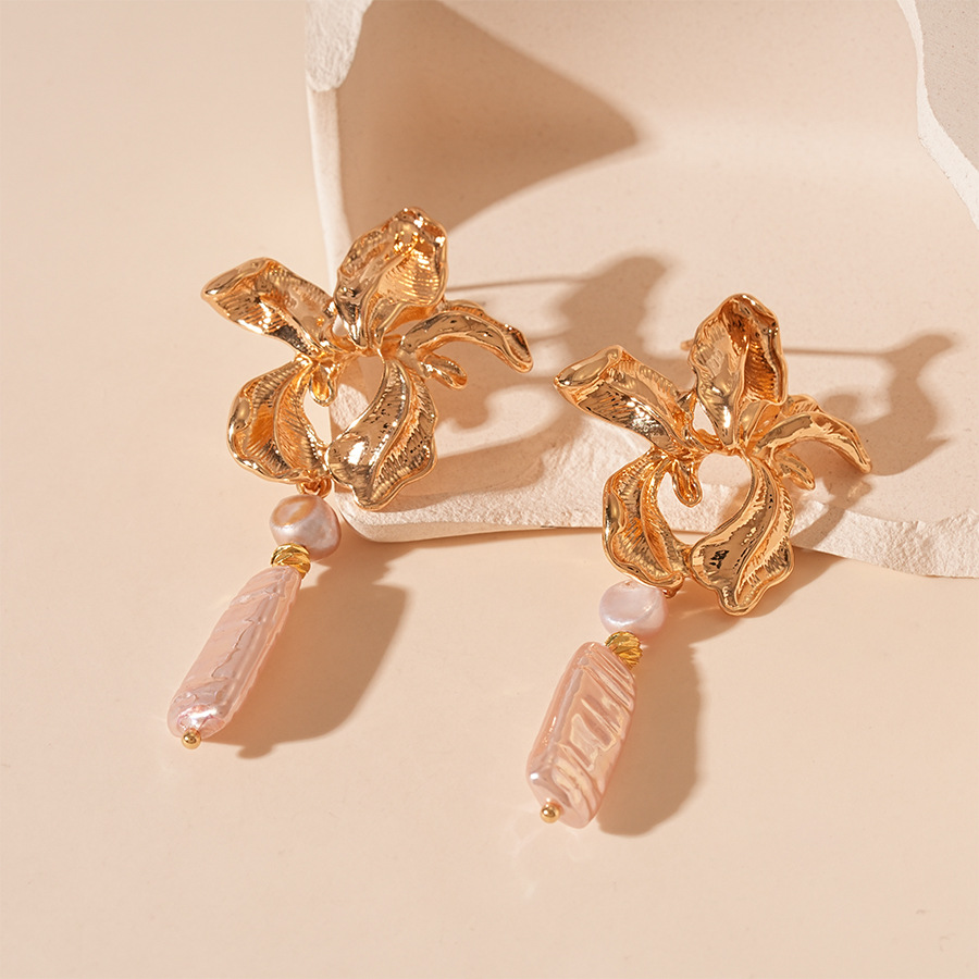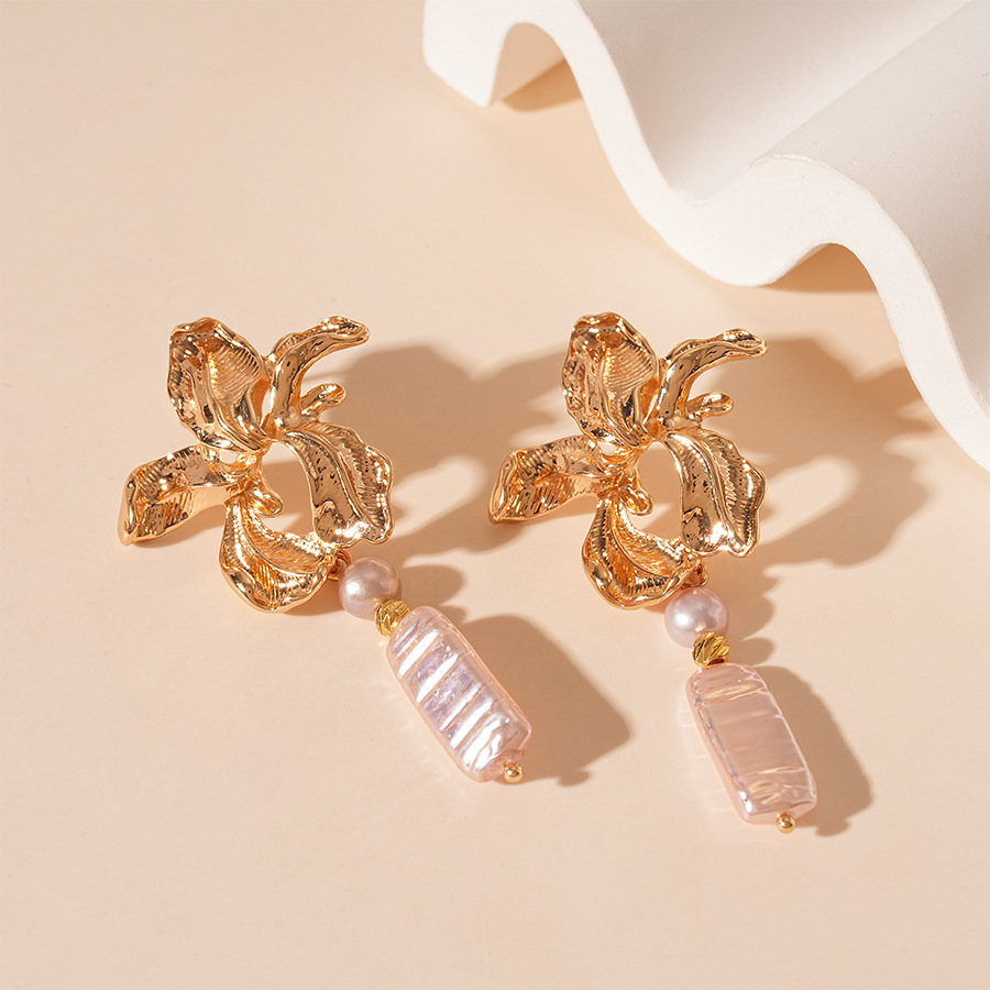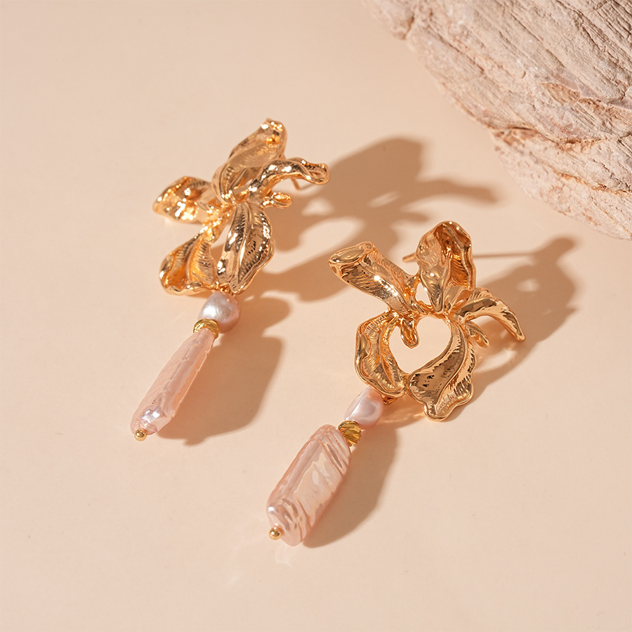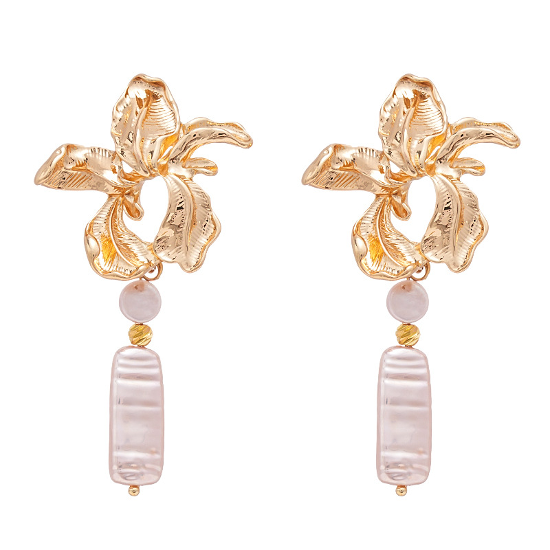 Orecchini in lega di zinco, lega in zinco, with Shell Pearl, placcato, gioielli di moda & per la donna & cavo, dorato, Venduto da coppia