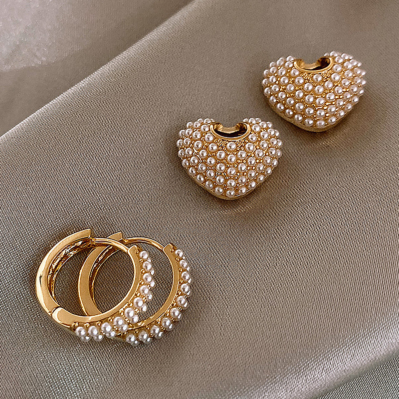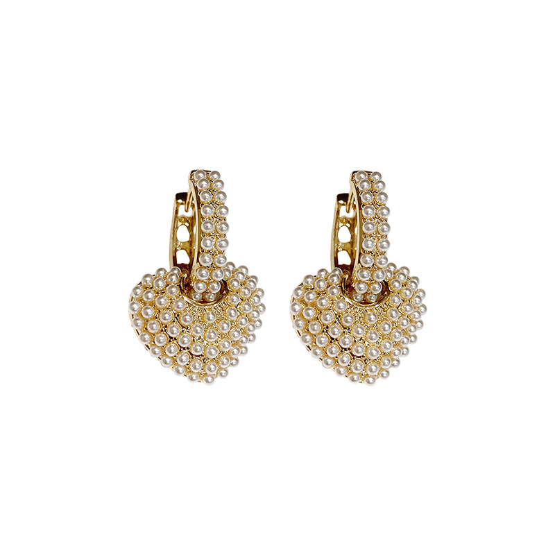 Orecchini in lega di zinco, lega in zinco, with perla in plastica, Cuore, placcato, gioielli di moda & per la donna, dorato, Venduto da PC
