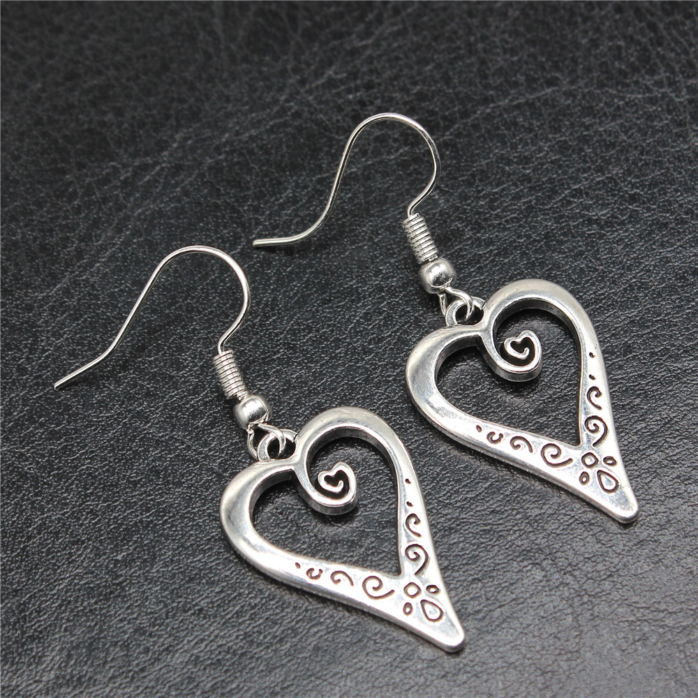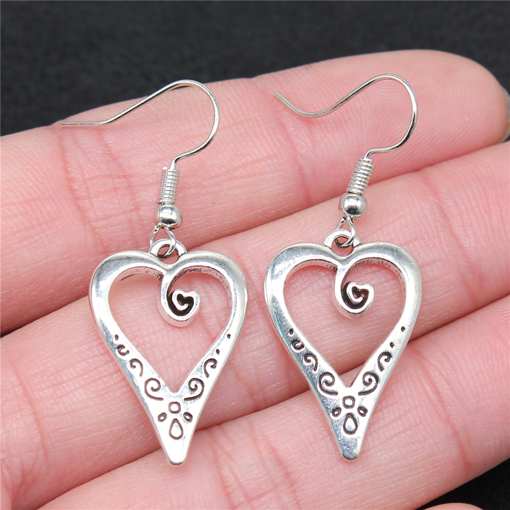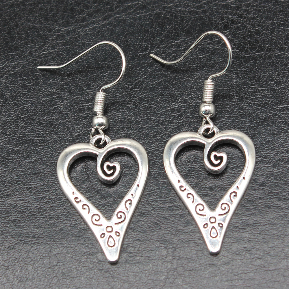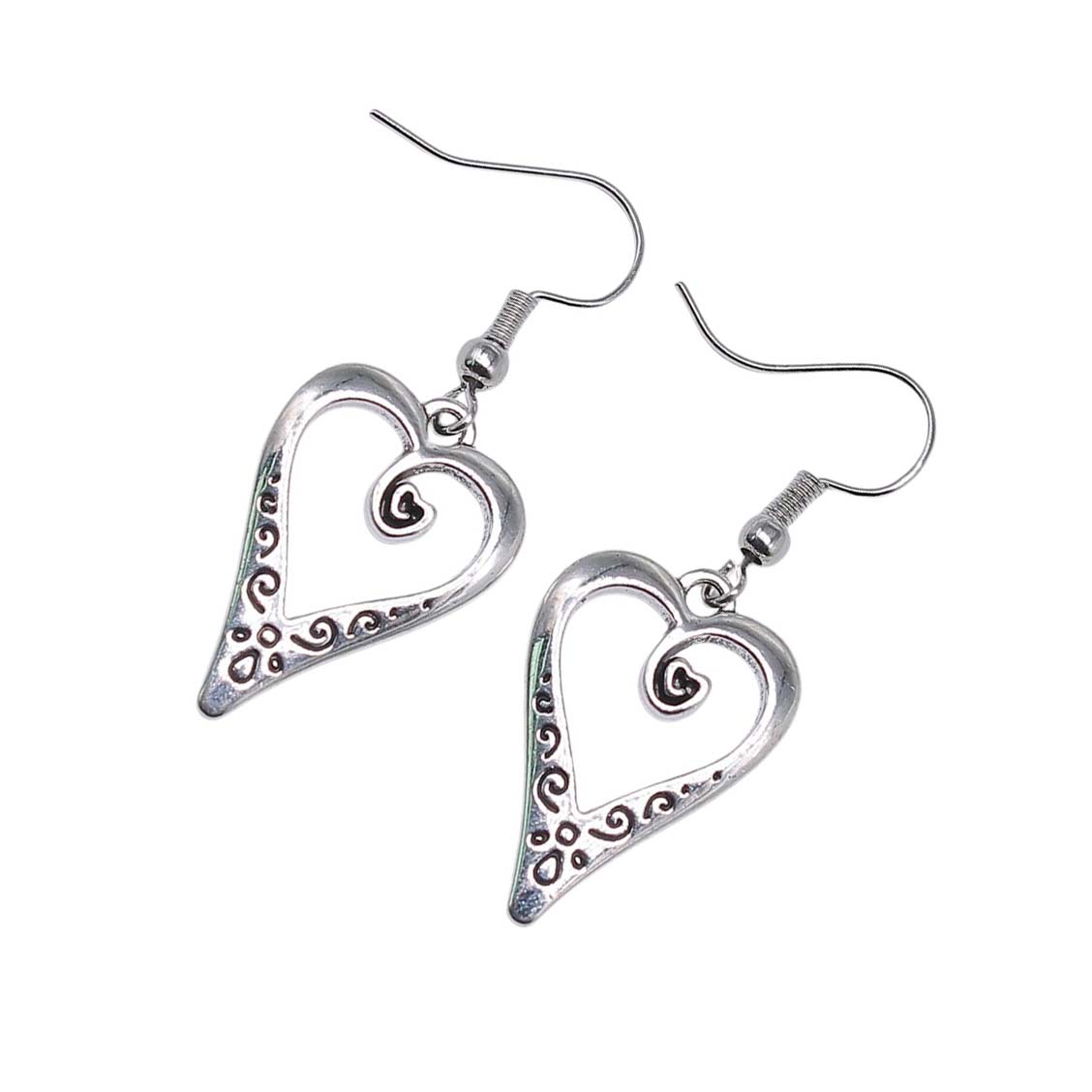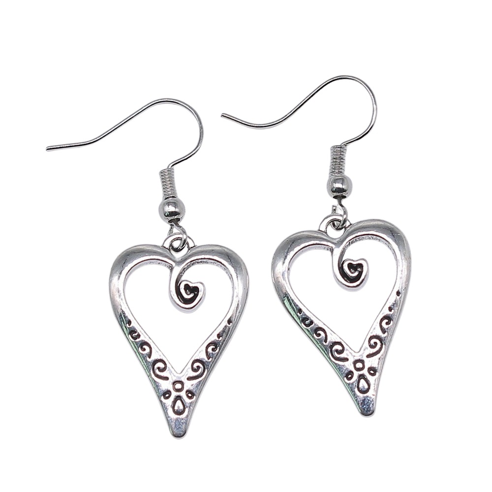 Orecchini in lega di zinco, lega in zinco, with ferro, Cuore, placcato argento antico, gioielli di moda & per la donna, Ear drop 25x17mm, ear hook 18x19mm, Venduto da coppia