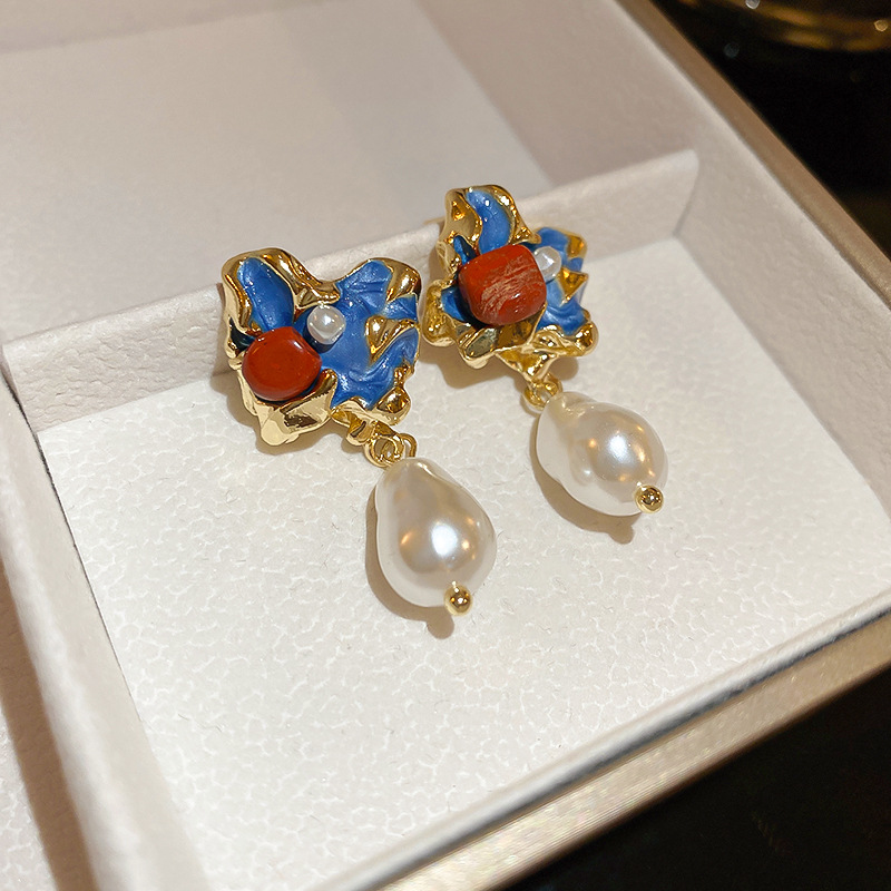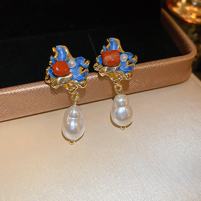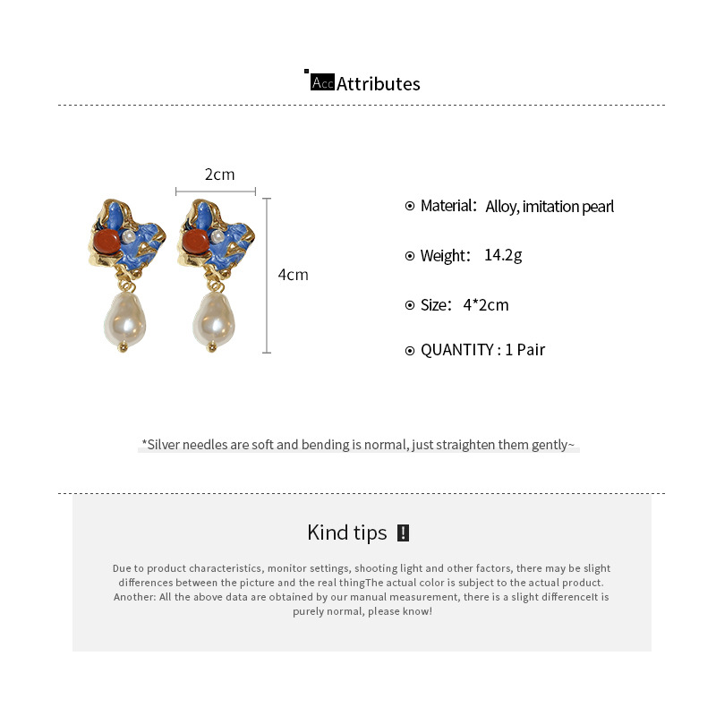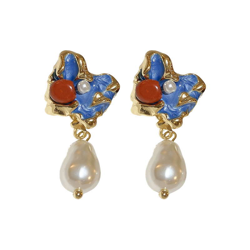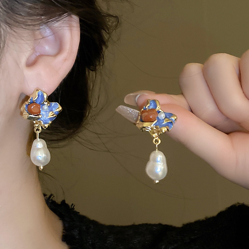 Orecchini in lega di zinco, lega in zinco, with perla in plastica, gioielli di moda & per la donna & smalto, blu, Venduto da coppia