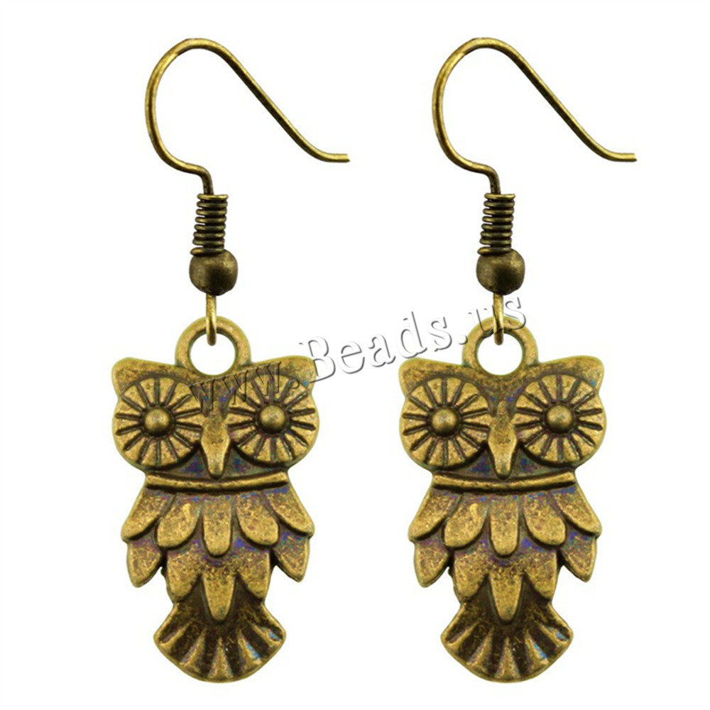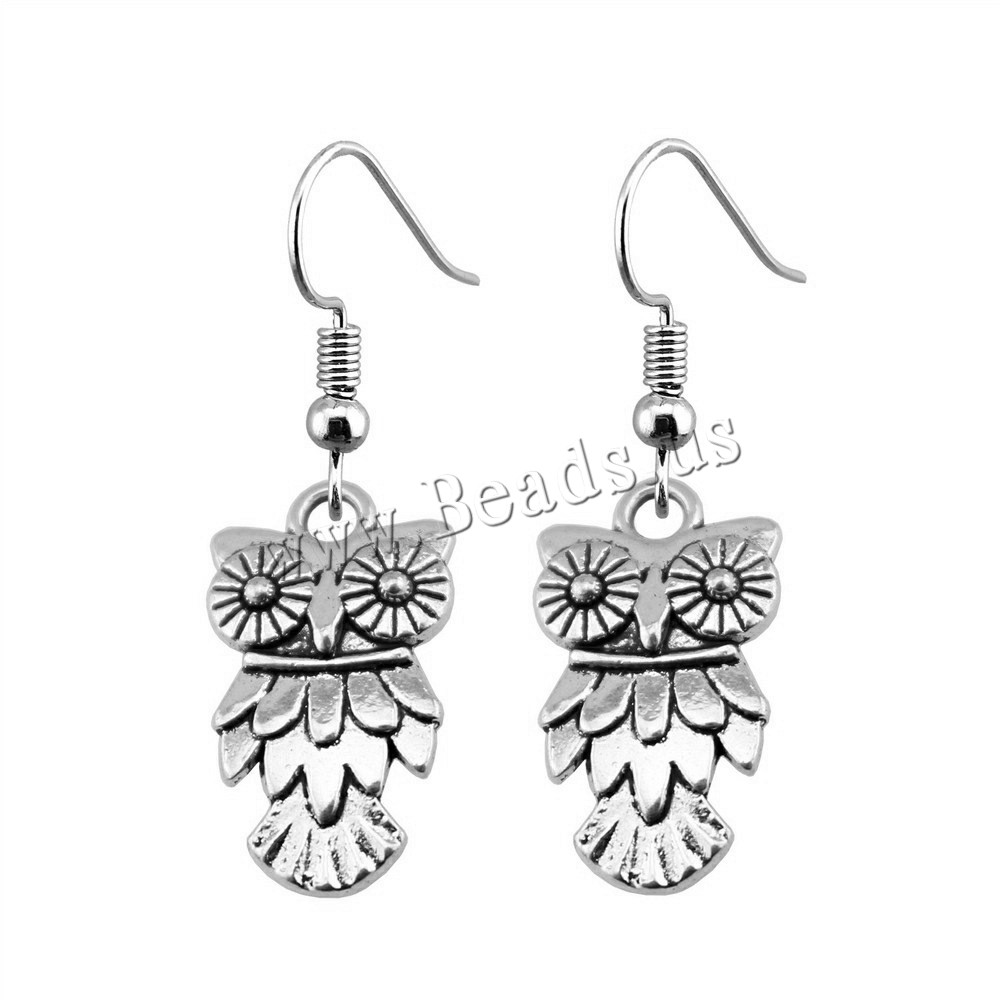 Orecchini in lega di zinco, lega in zinco, with ferro, Gufo, placcato, gioielli di moda & per la donna, nessuno, assenza di nichel,piombo&cadmio, Ear drop 20x11mm, ear hook 18x19mm, Venduto da coppia