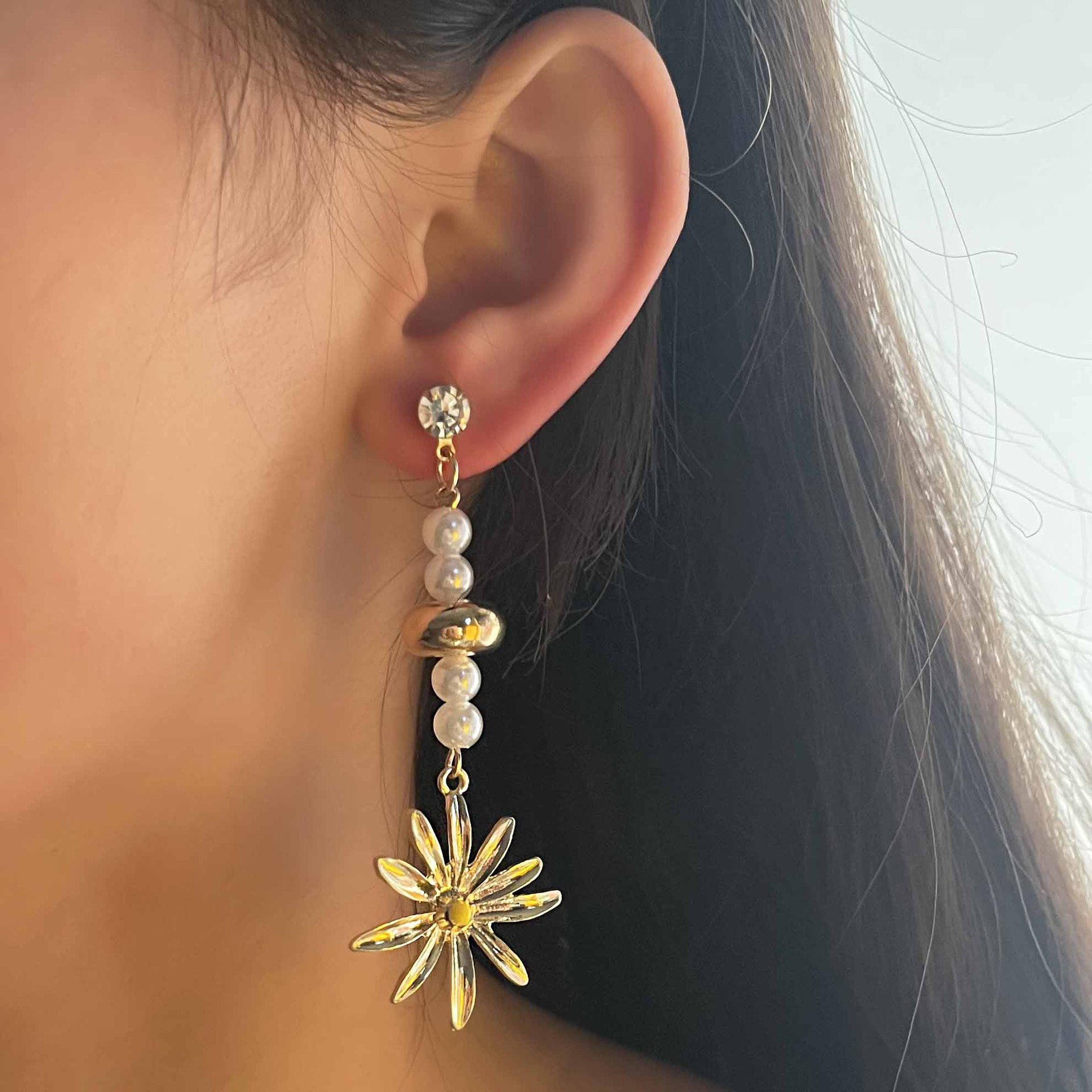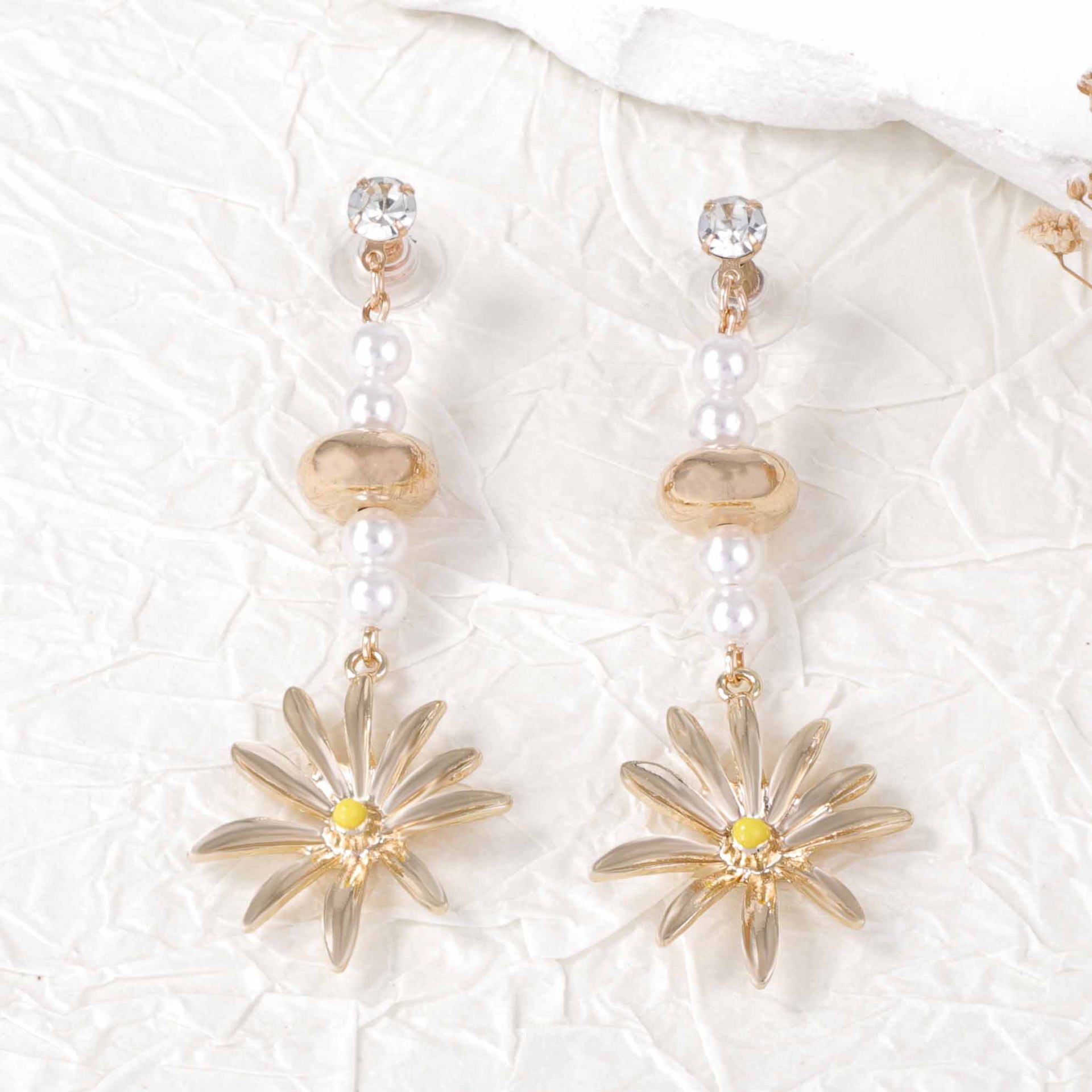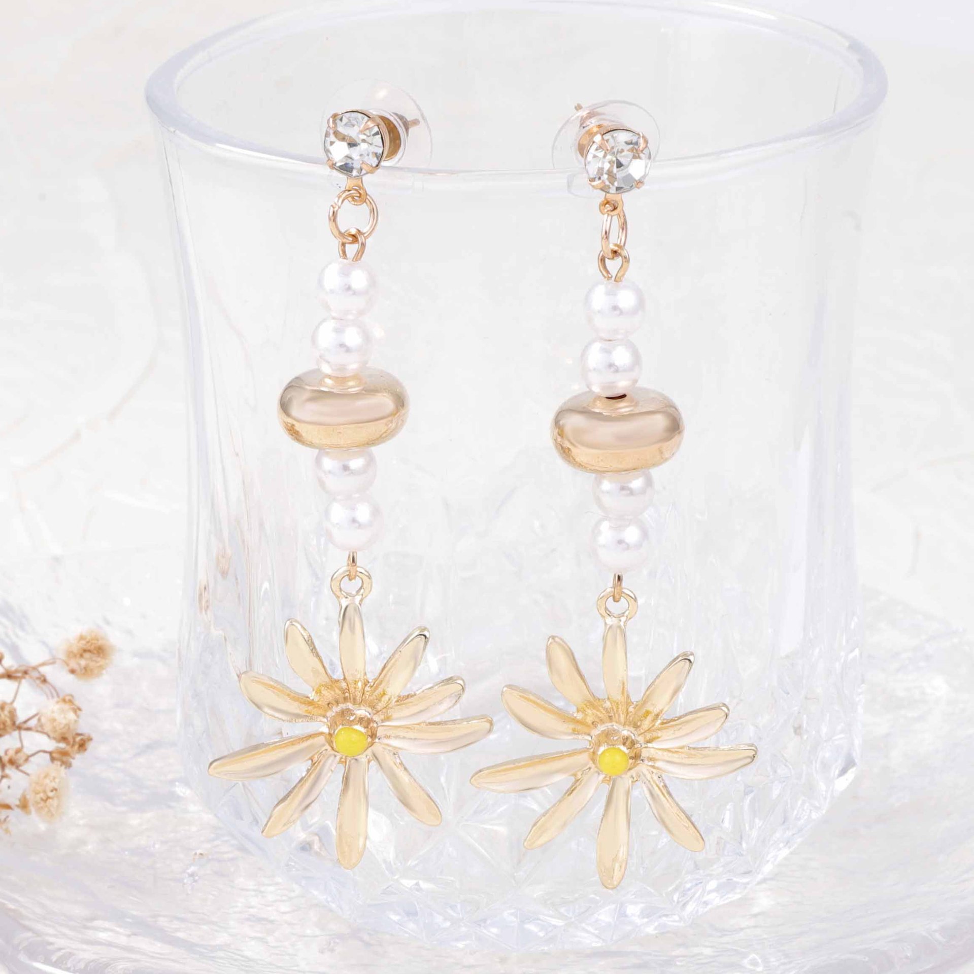 Orecchini in lega di zinco, lega in zinco, with perla in plastica, placcato color oro, gioielli di moda, colori misti, assenza di nichel,piombo&cadmio, Venduto da coppia