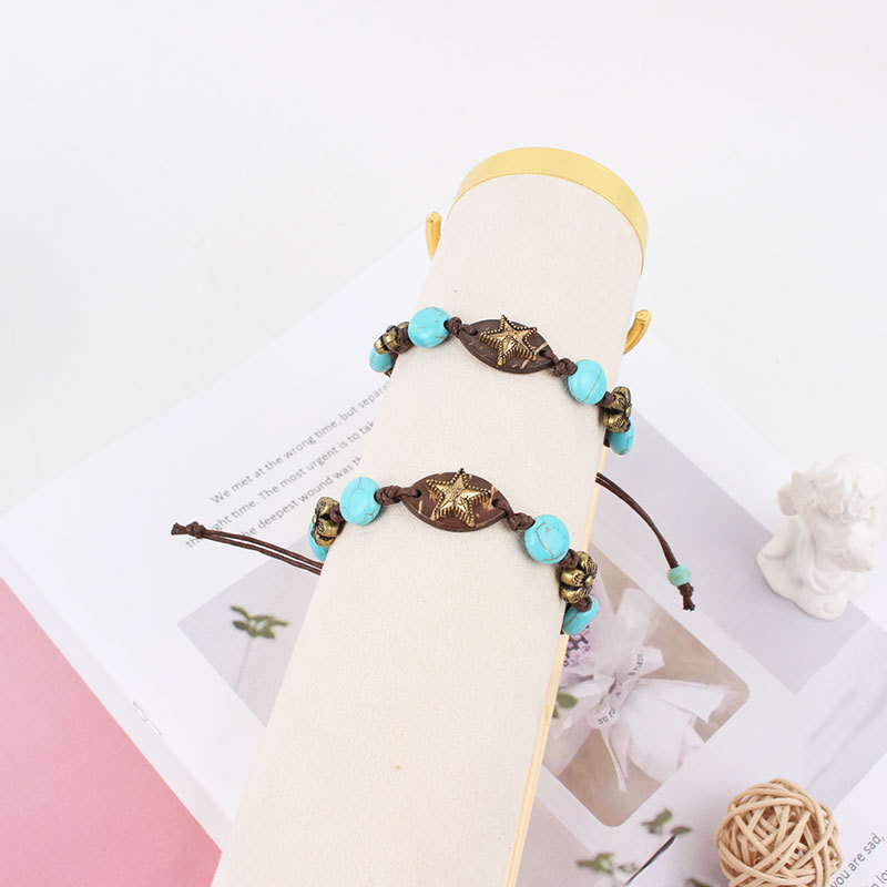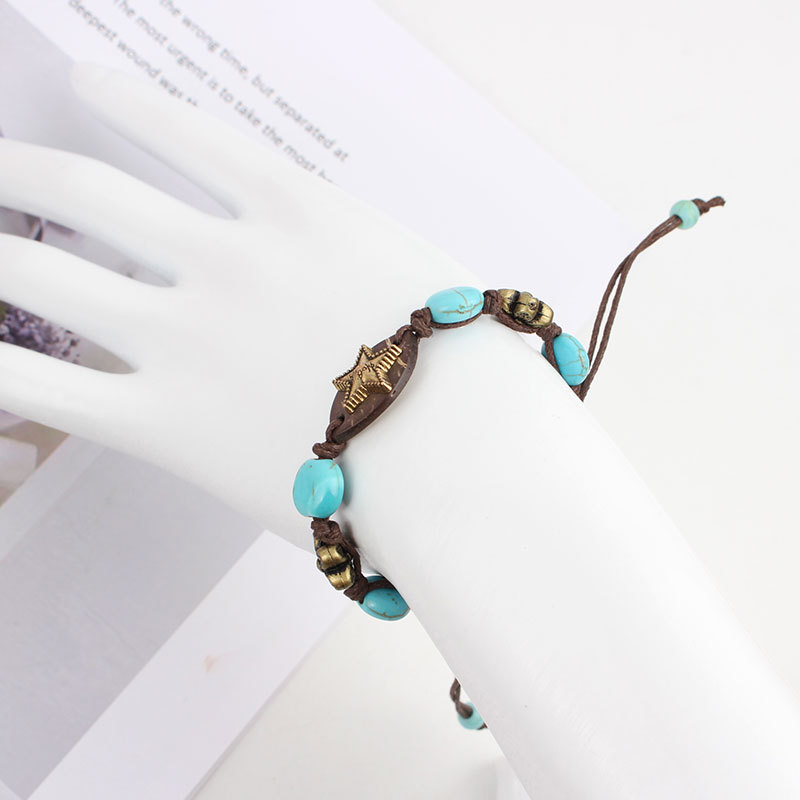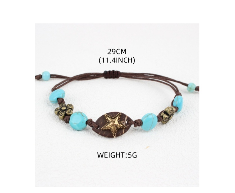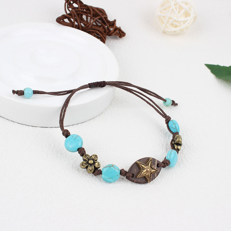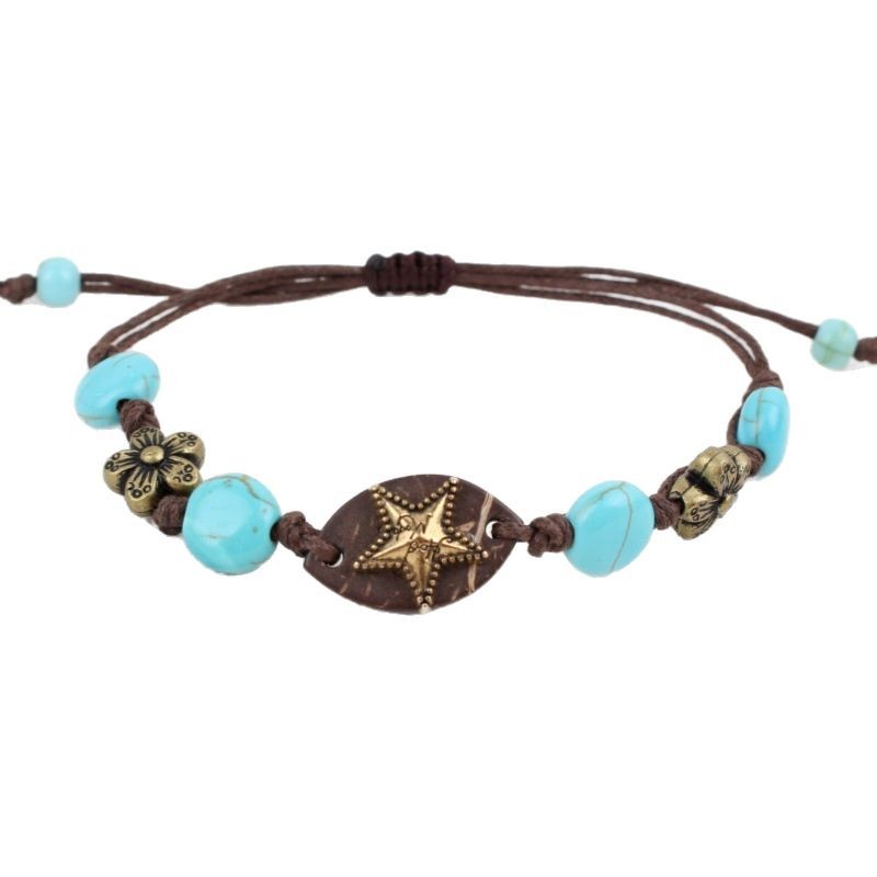 Bracciale bigiotteria, lega in zinco, with cocco & corda di cera & turchese naturale, placcato color oro, gioielli di moda, nessuno, Venduto da PC
