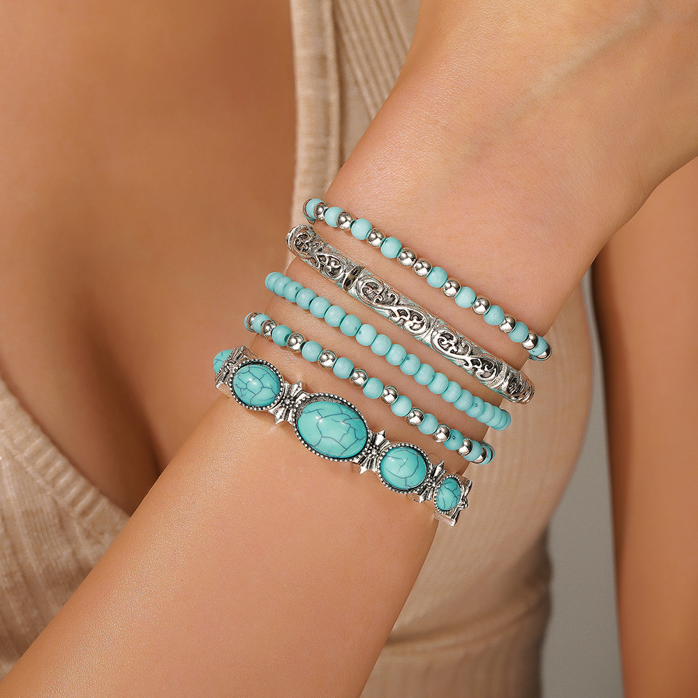 Bracciale bigiotteria, lega in zinco, with turchese sintetico, placcato color oro, gioielli di moda, nessuno, Venduto da PC