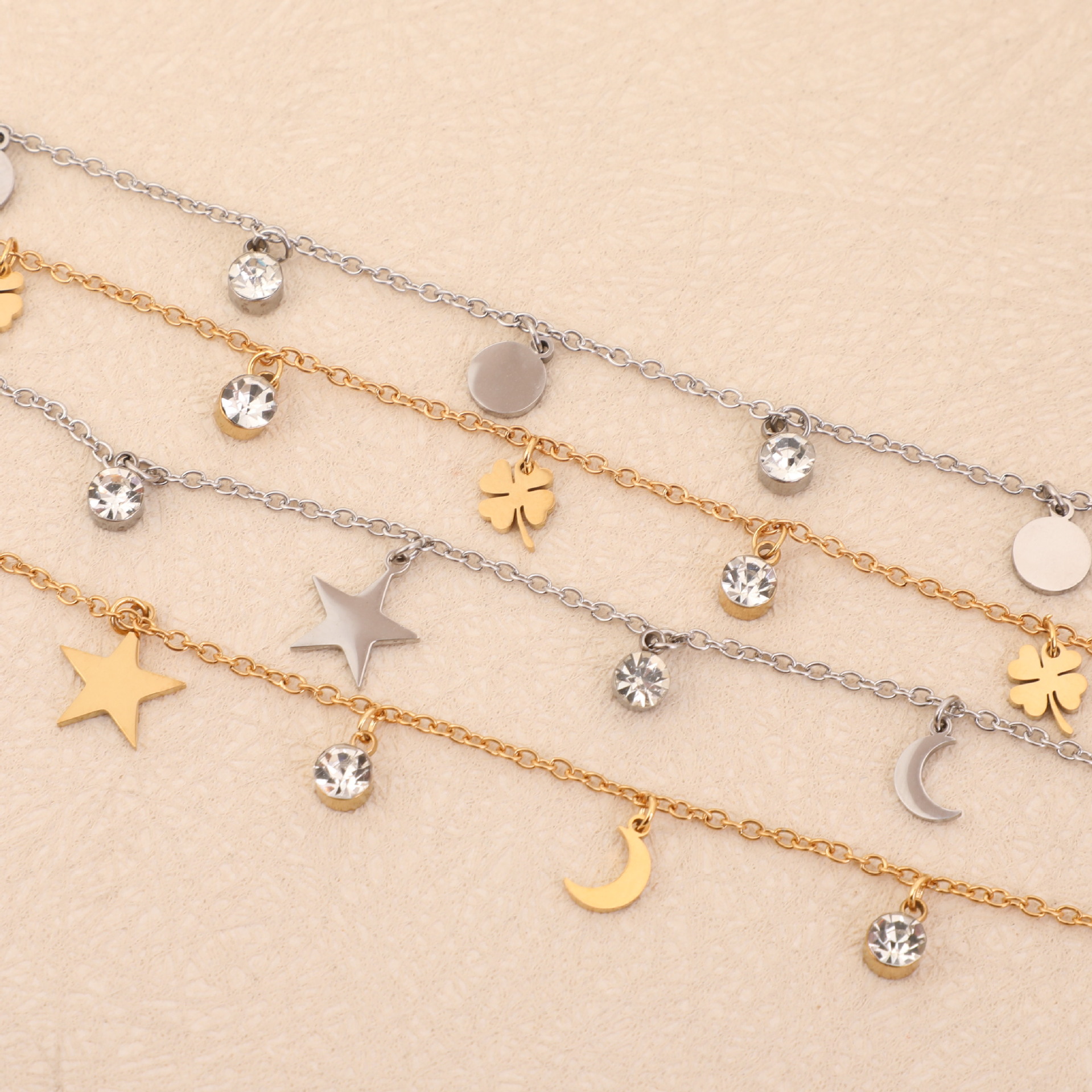 1:Golden stars and moon style2:Golden four-leaf clover model3:Golden disc style4:Gold good style5:Steel color stars and moon style6:Steel color disc style