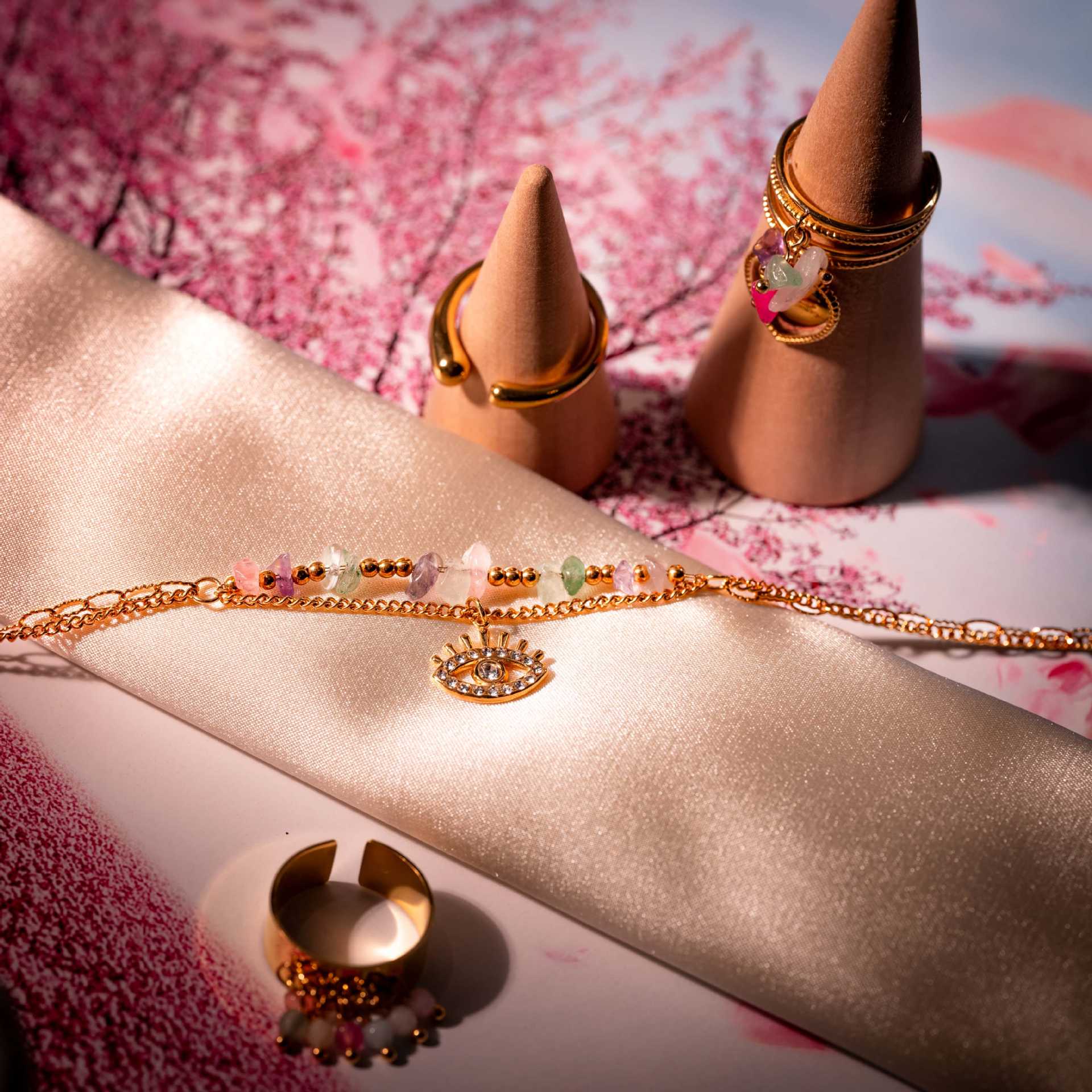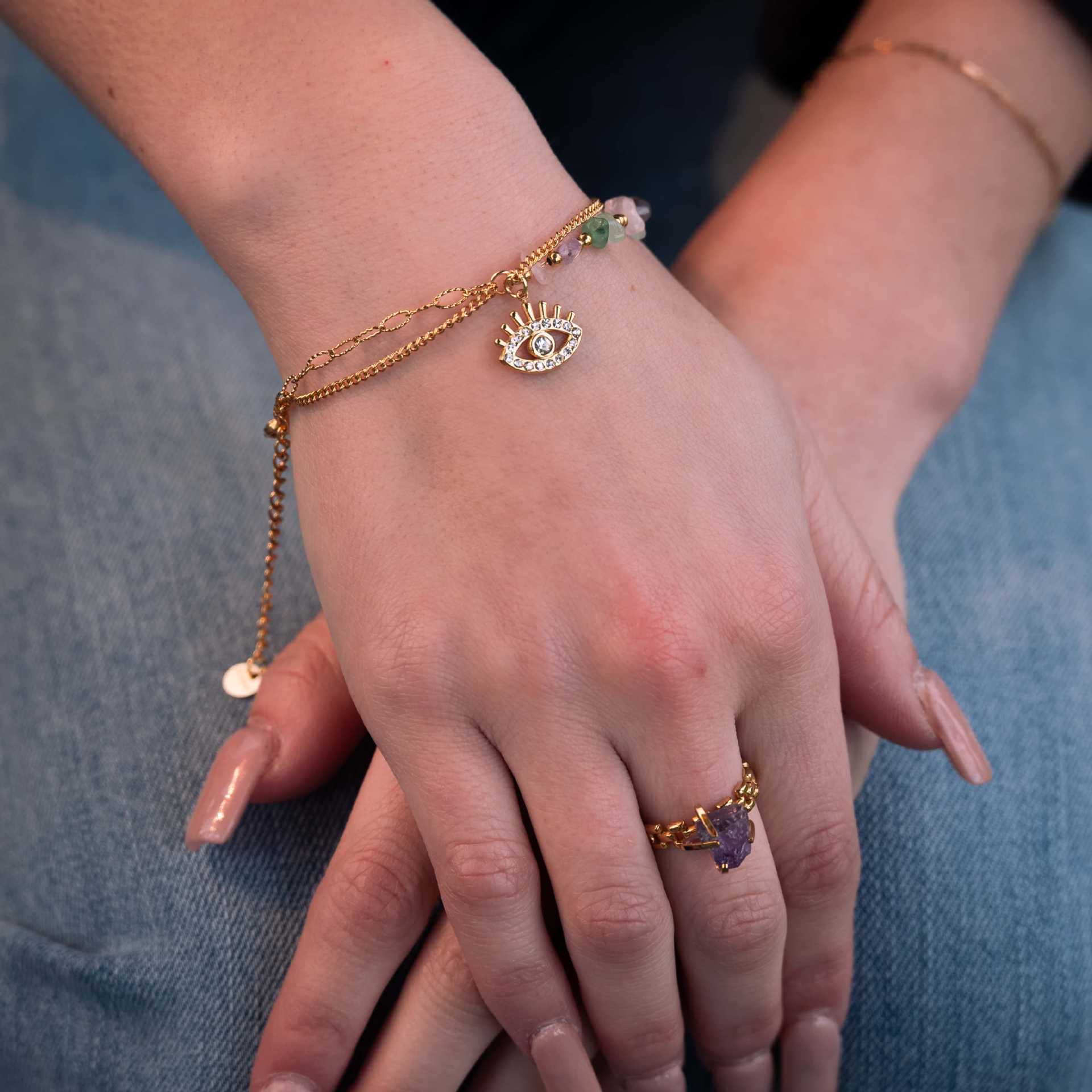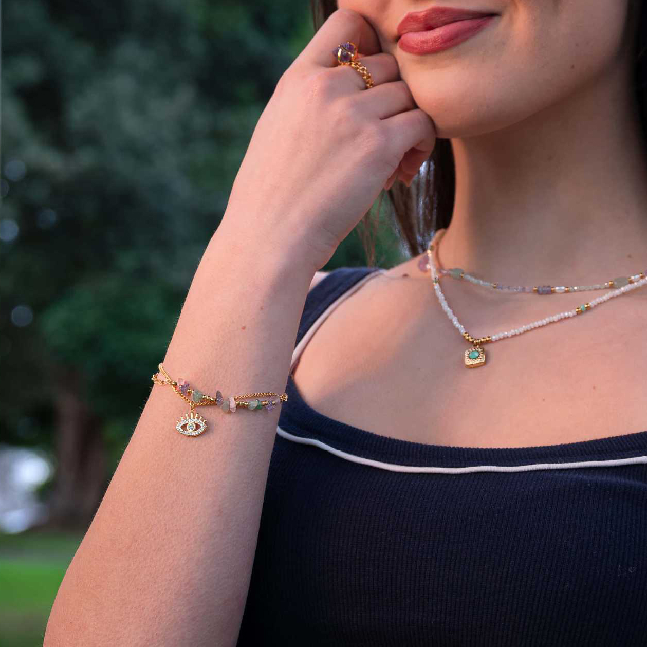 Bracciale gioielli in acciaio inossidabile, 304 acciaio inox, with Pietra naturale, Placcato oro 18K, Doppio strato & Micro spianare cubic zirconia & per la donna, Venduto da PC