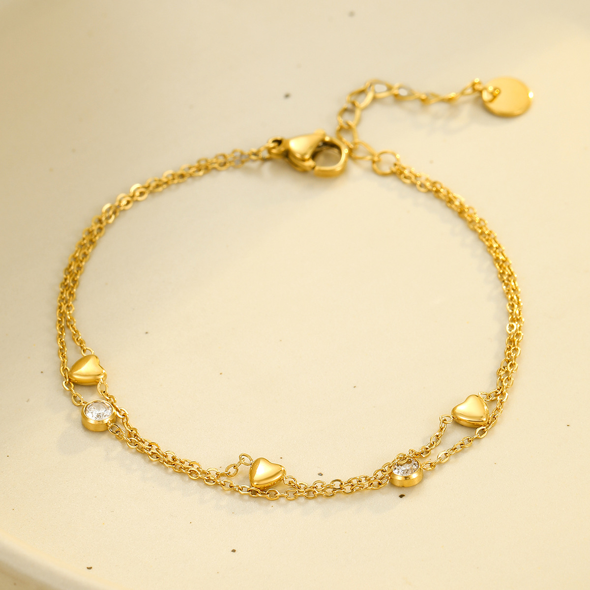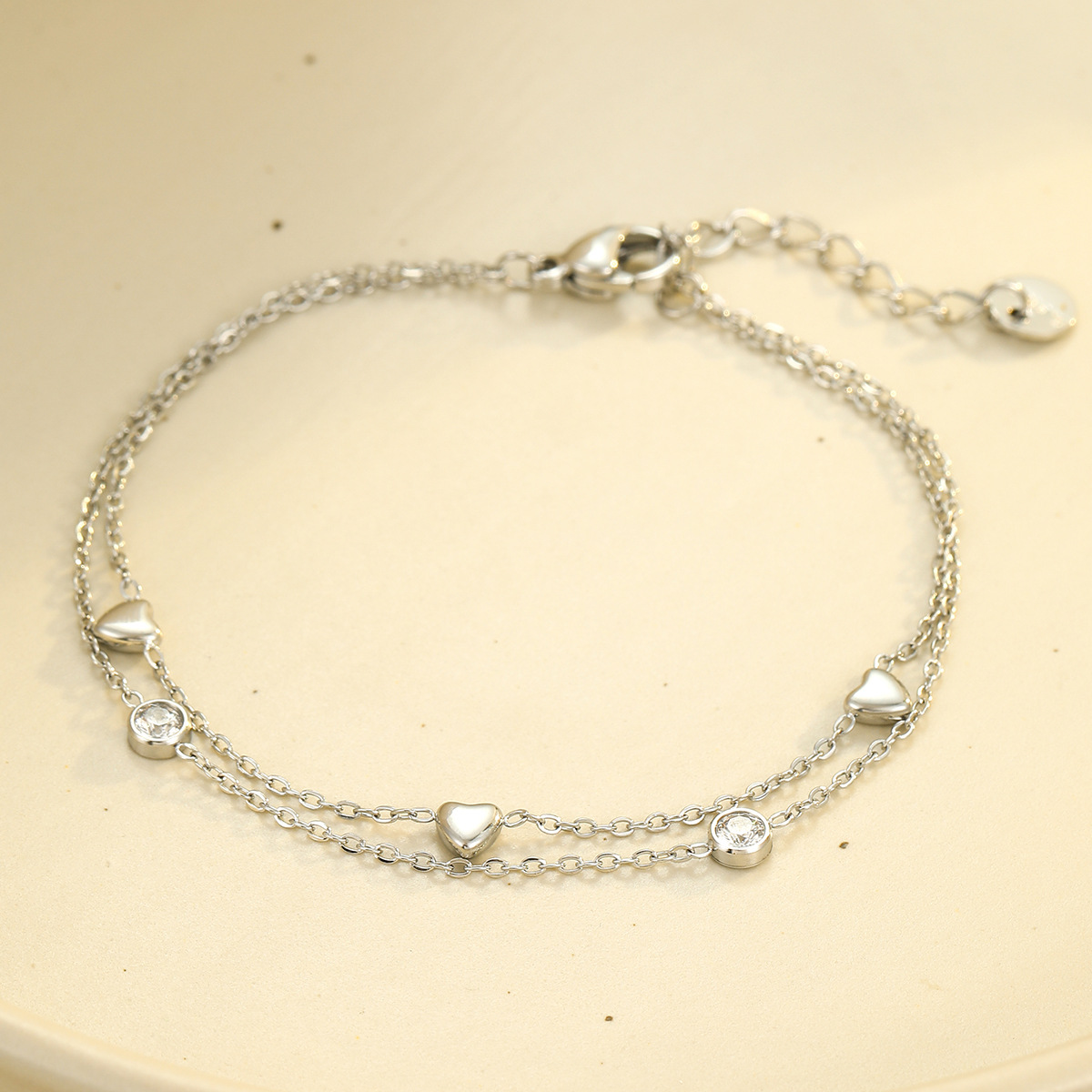 Bracciale gioielli in acciaio inossidabile, 304 acciaio inox, placcato, Doppio strato & Micro spianare cubic zirconia & per la donna, nessuno, Venduto da PC