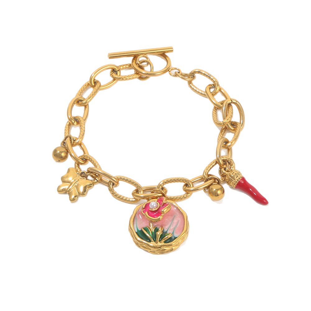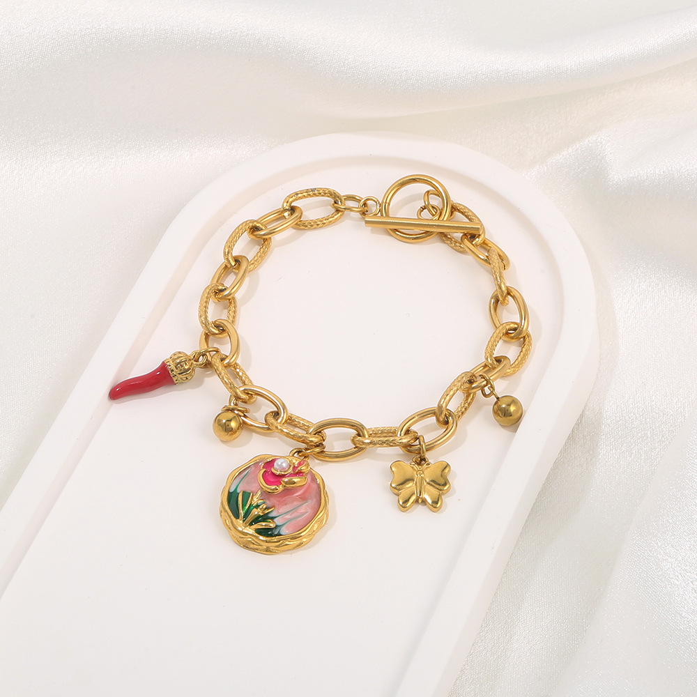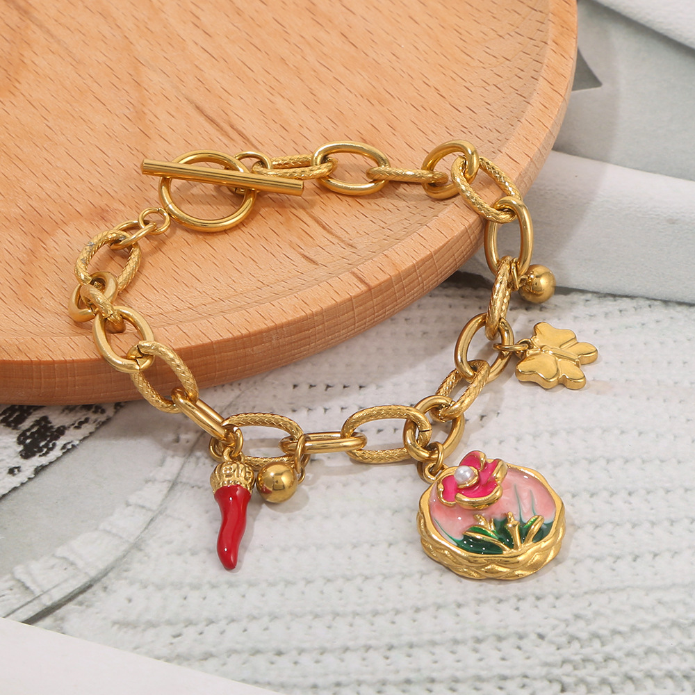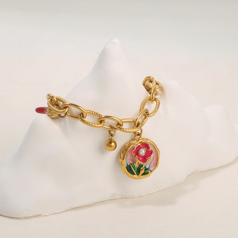 Bracciale gioielli in acciaio inossidabile, 304 acciaio inox, with perla in plastica, placcato color oro, gioielli di moda & smalto, dorato, Venduto da PC