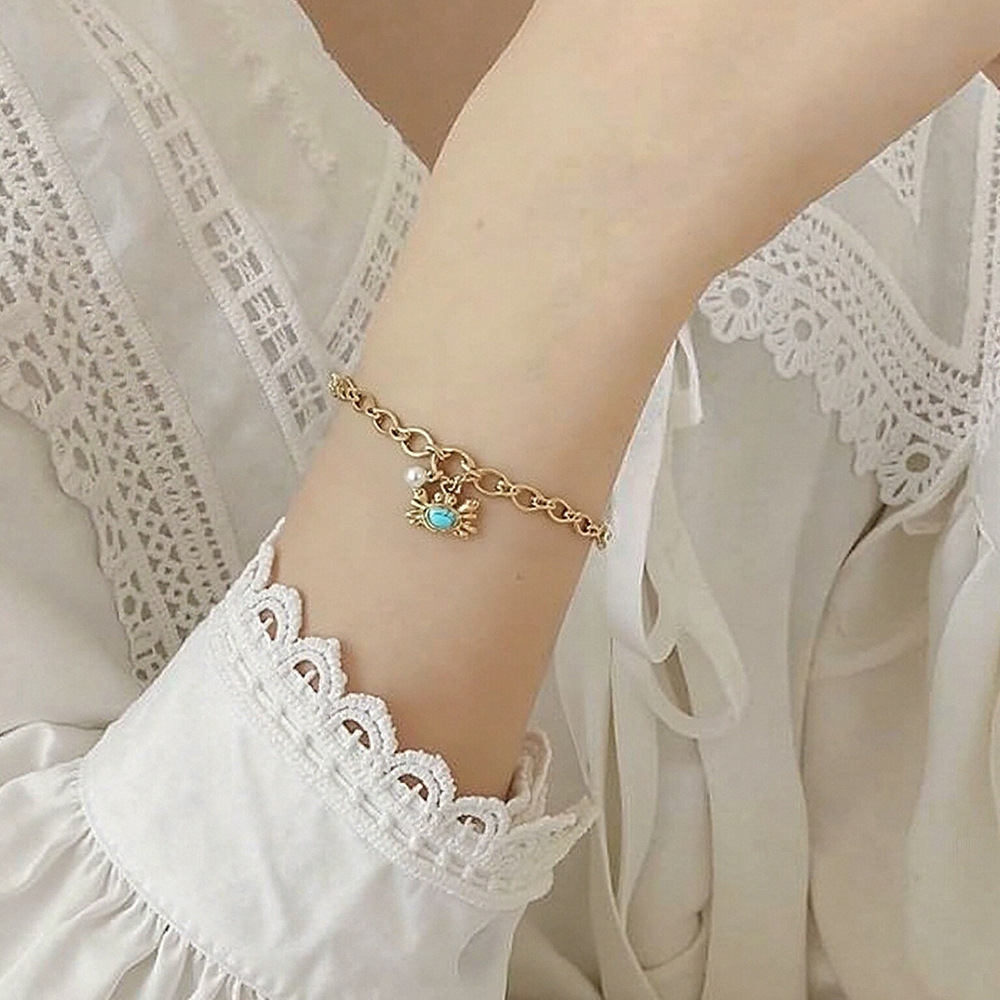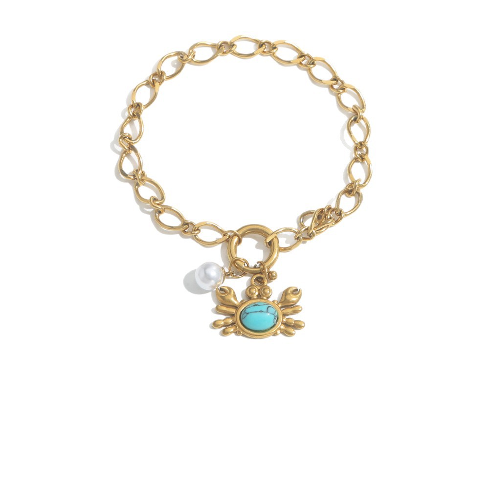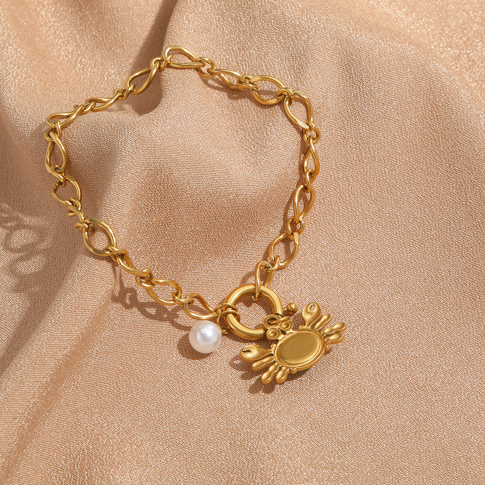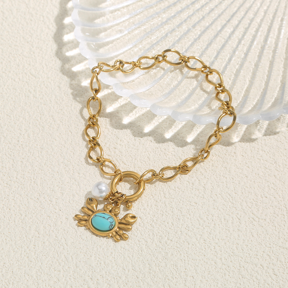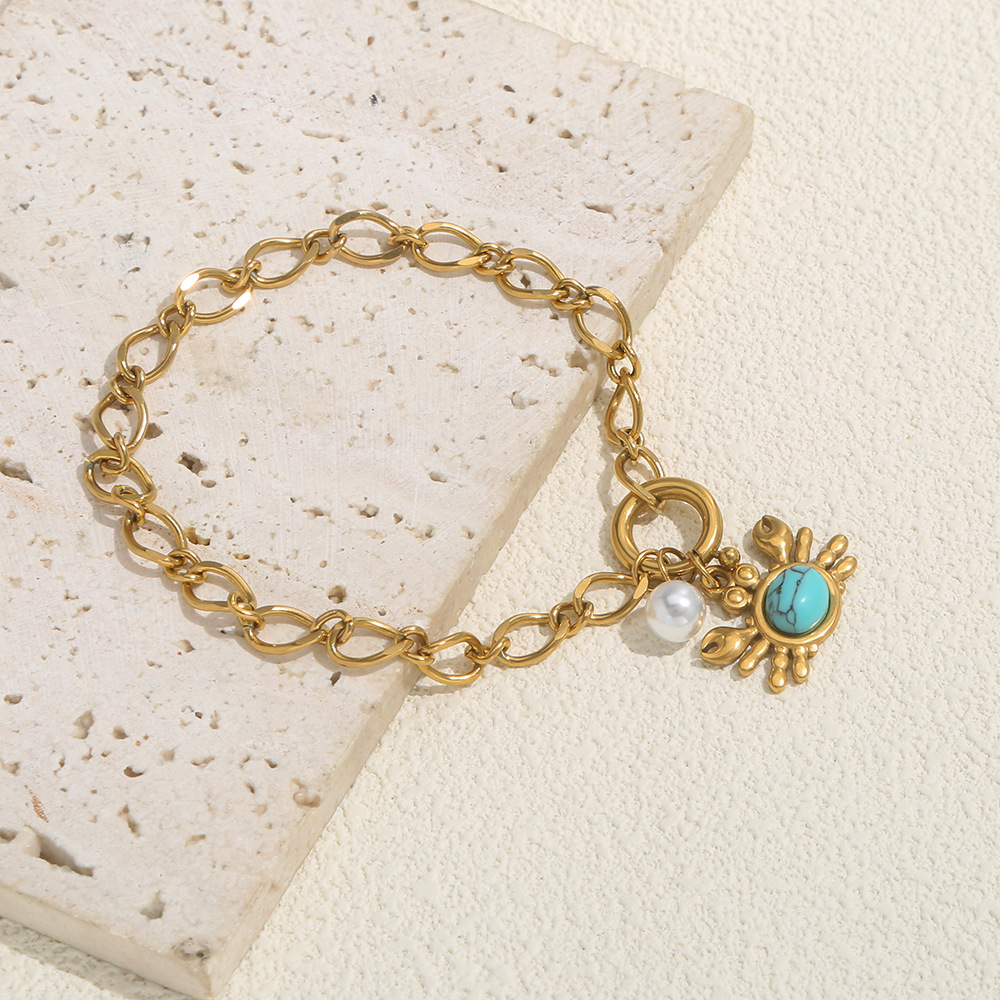 Bracciale gioielli in acciaio inossidabile, 304 acciaio inox, with Pietra naturale & perla in plastica, placcato color oro, gioielli di moda & smalto, dorato, Venduto da PC