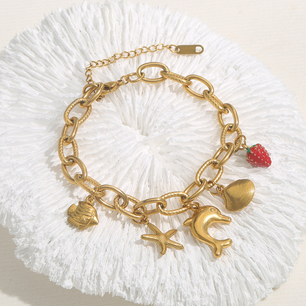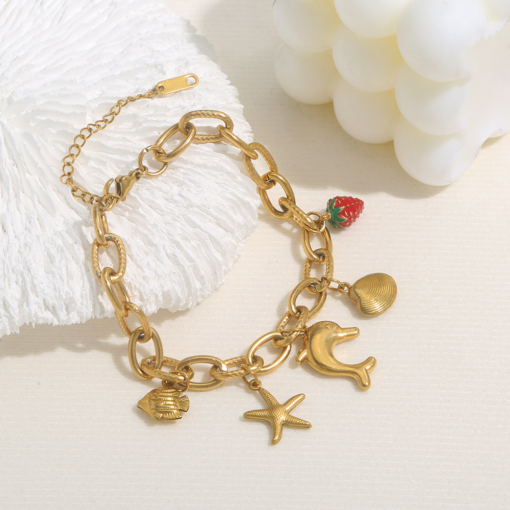 Bracciale gioielli in acciaio inossidabile, 304 acciaio inox, with conchiglia, placcato, per la donna & a due lati & cavo, nessuno, Lunghezza Appross. 16 cm, Venduto da PC