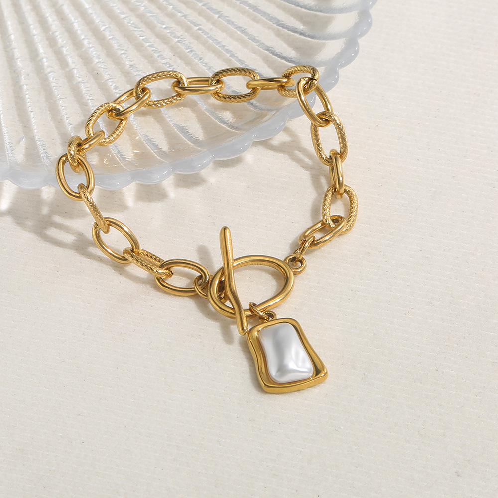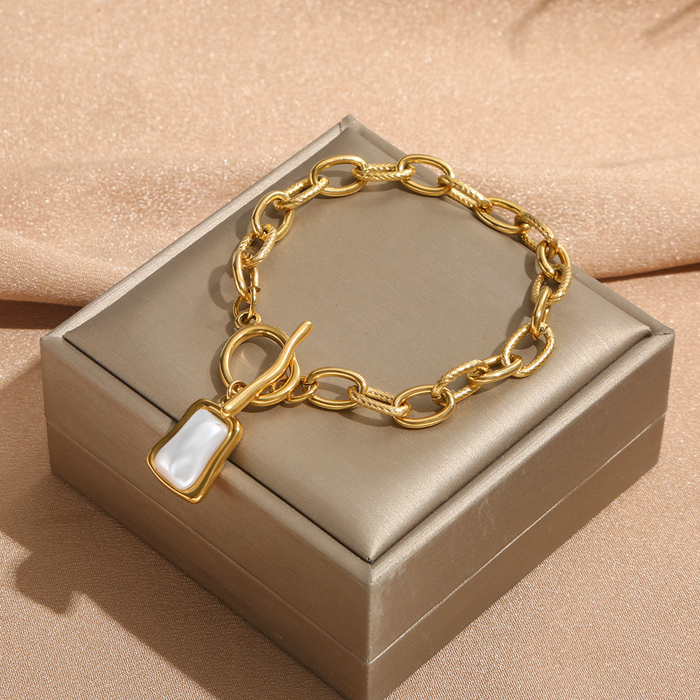 Bracciale gioielli in acciaio inossidabile, 304 acciaio inox, with conchiglia, placcato color oro, gioielli di moda, dorato, Venduto da PC