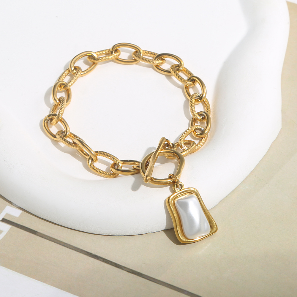 Bracciale gioielli in acciaio inossidabile, 304 acciaio inox, with perla in plastica, placcato, gioielli di moda & per la donna, Venduto da PC