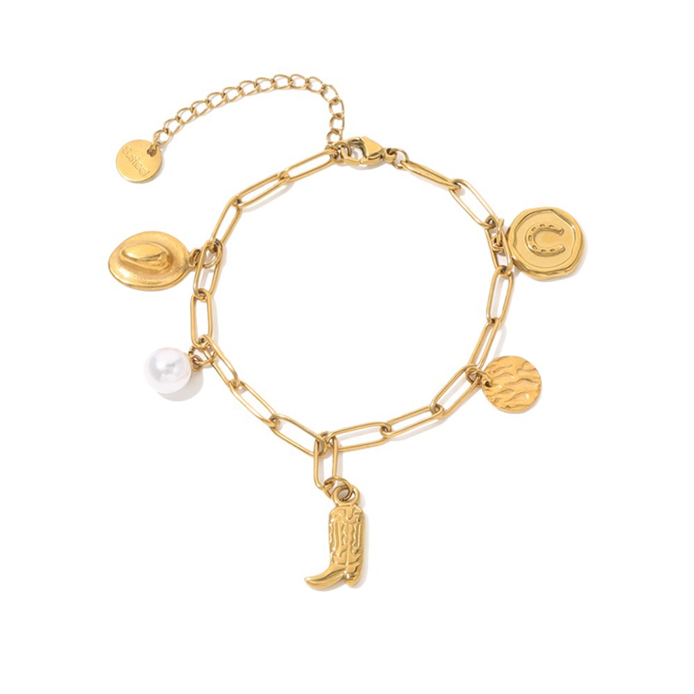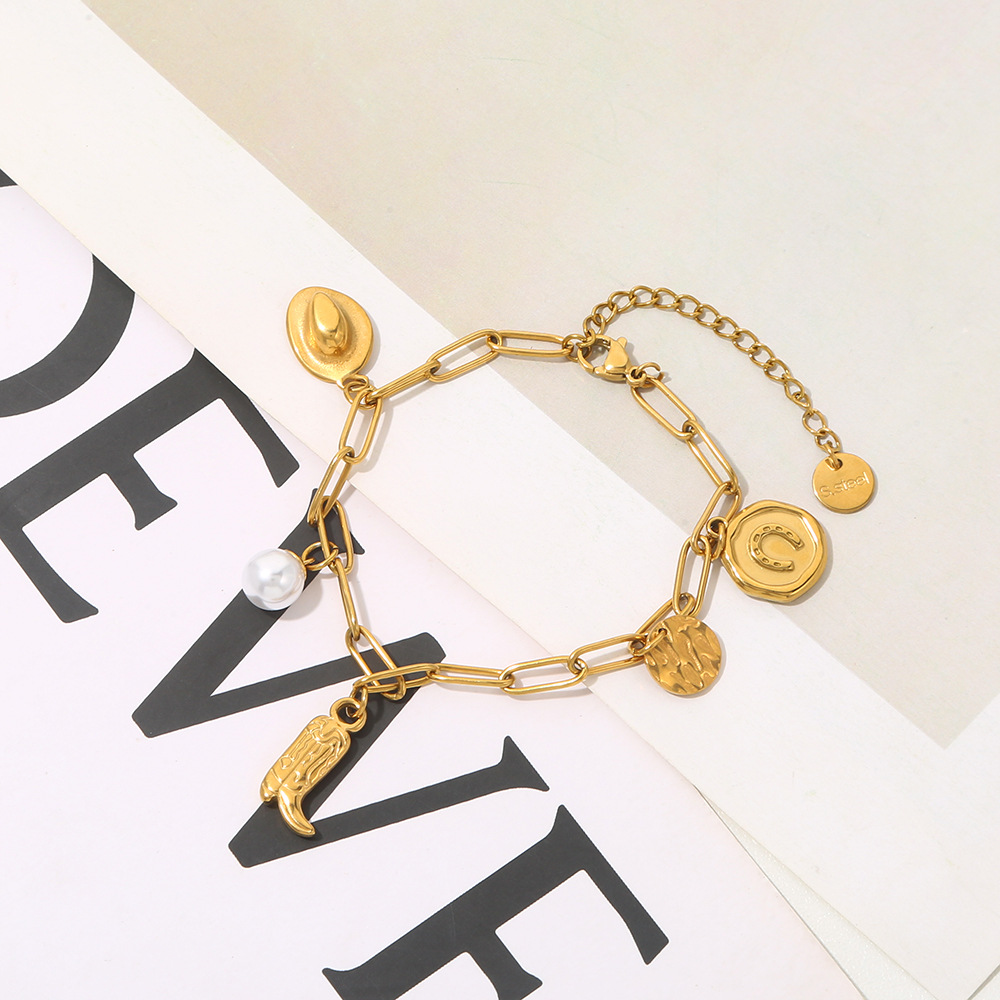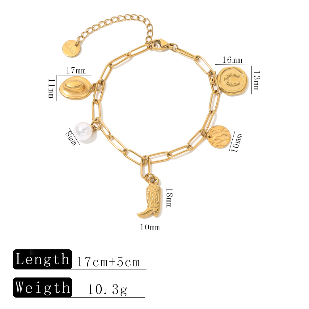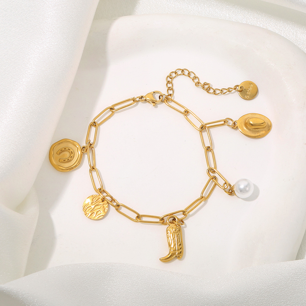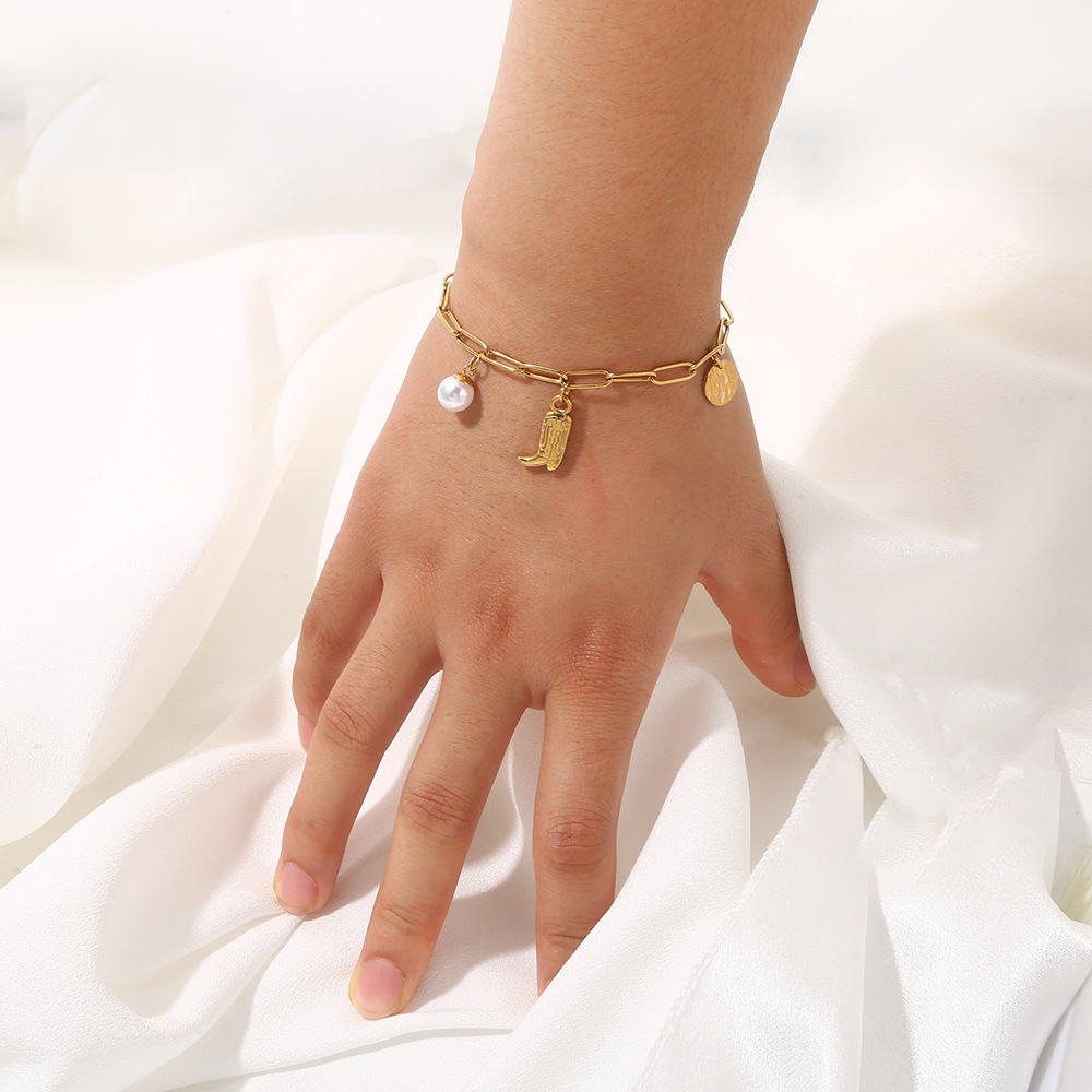 Bracciale gioielli in acciaio inossidabile, 304 acciaio inox, with perla in plastica, placcato color oro, gioielli di moda, dorato, Venduto da PC