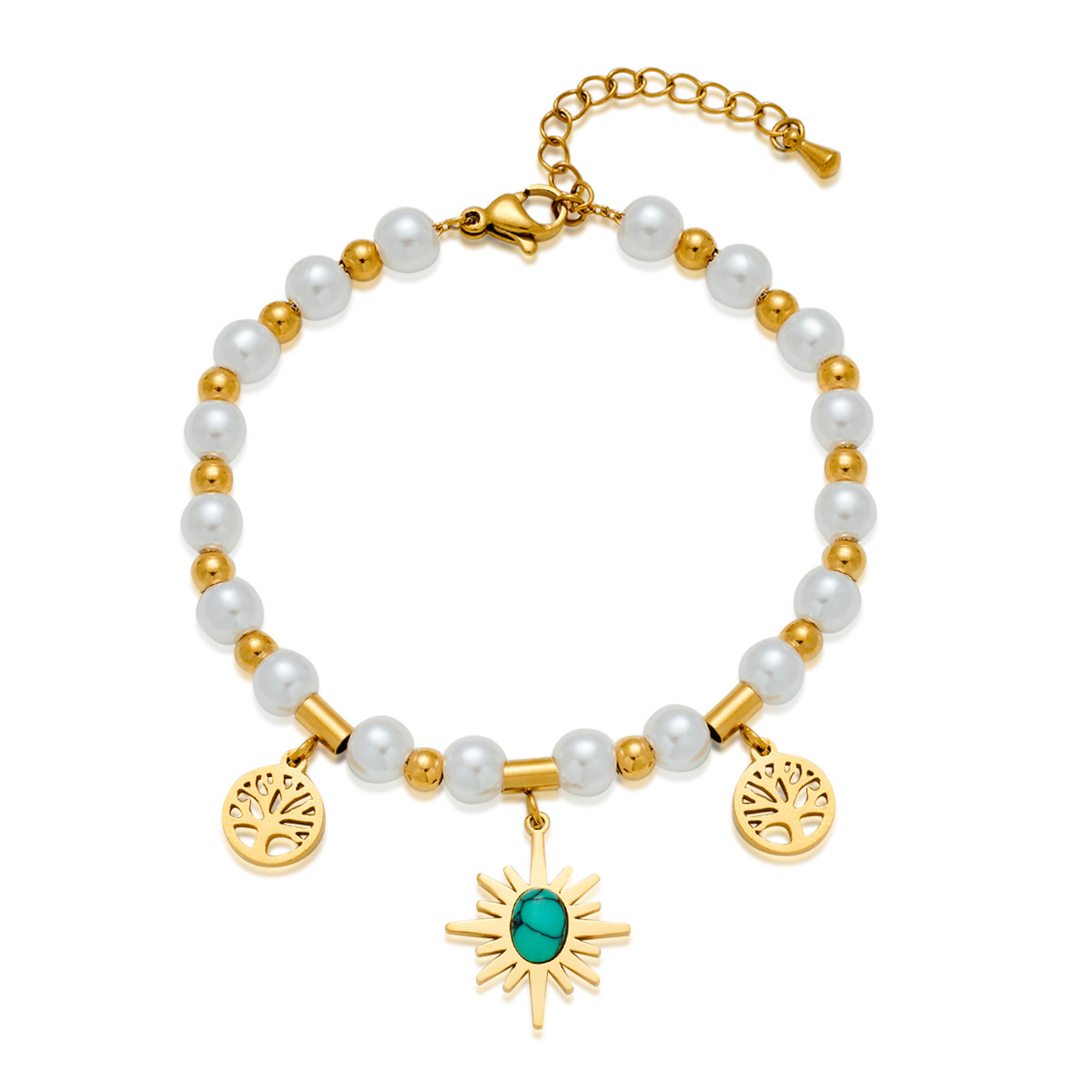 Bracciale gioielli in acciaio inossidabile, 304 acciaio inox, with bianco conchiglia & perla in plastica, Placcato oro 18K, gioielli di moda & stili diversi per la scelta & per la donna, Venduto da PC
