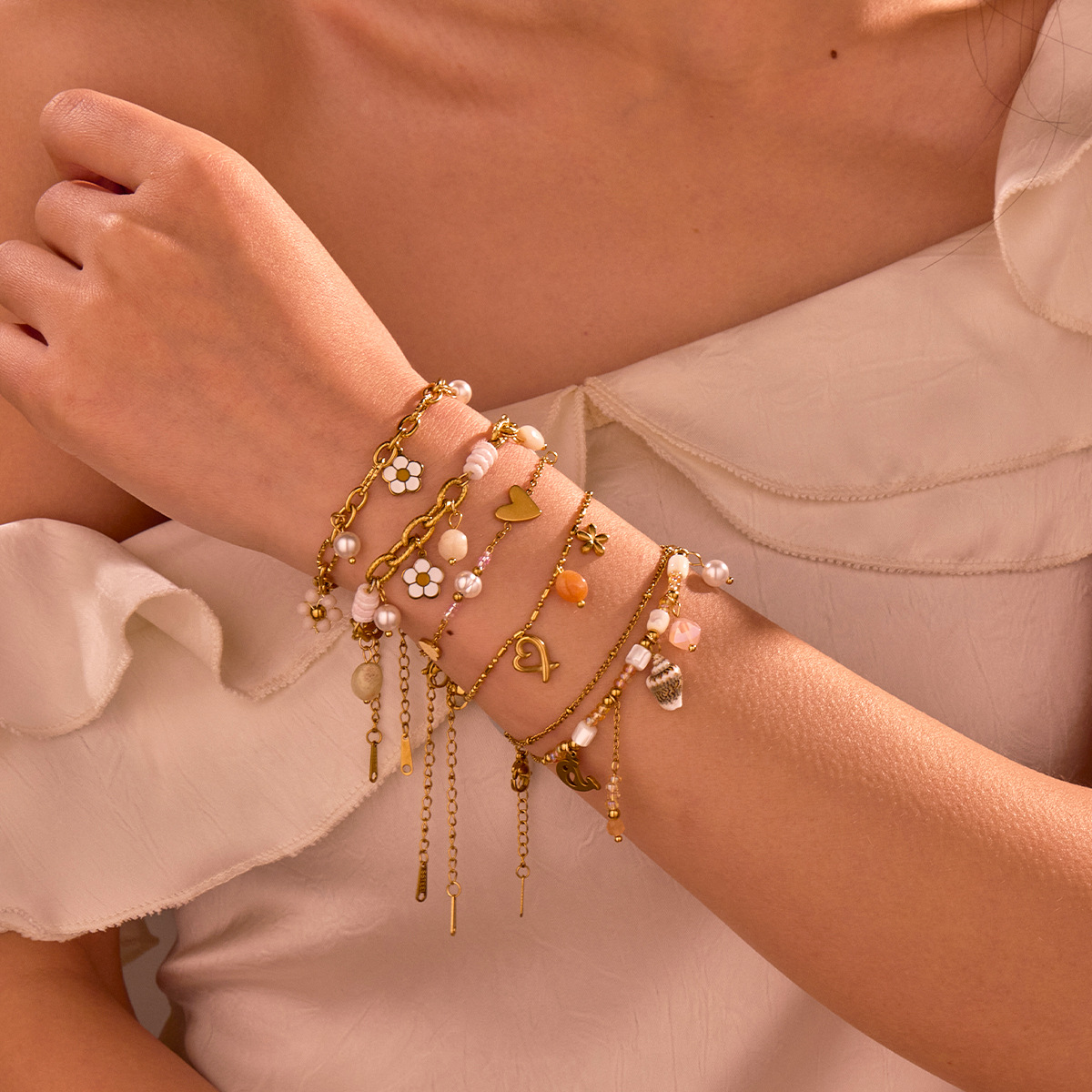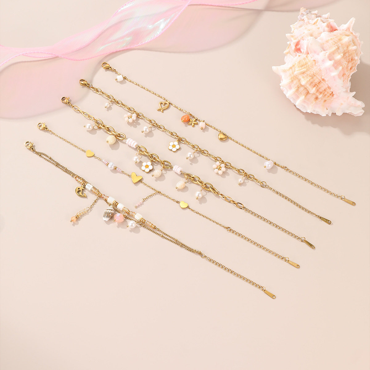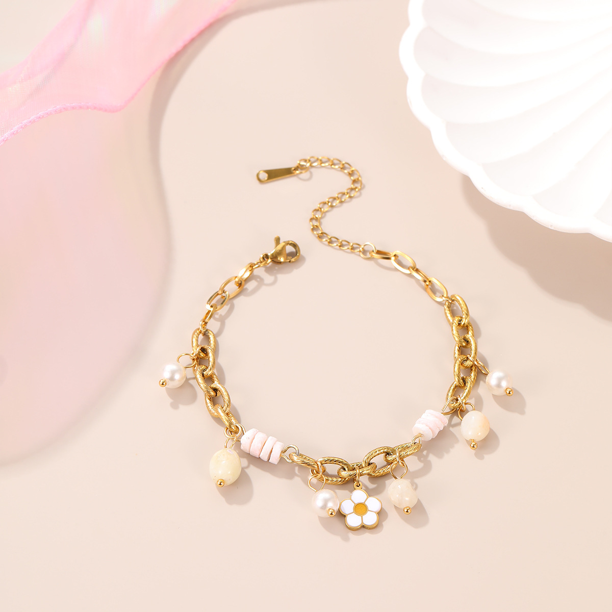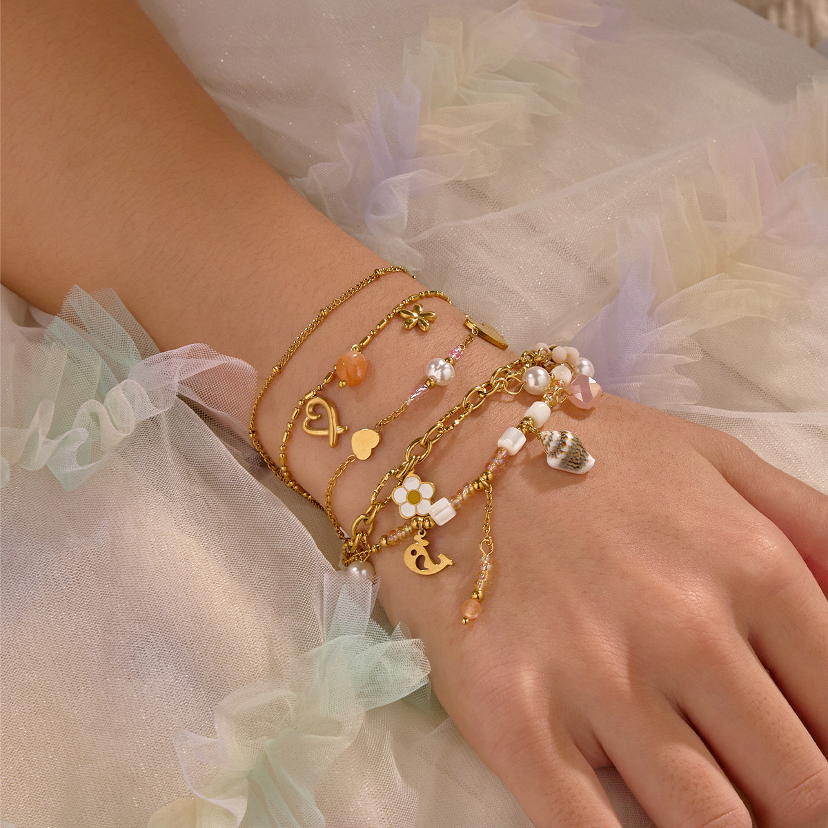 Bracciale gioielli in acciaio inossidabile, 304 acciaio inox, with resina & perla in plastica, laccato oro 18K, stili diversi per la scelta & per la donna & smalto, Venduto da PC