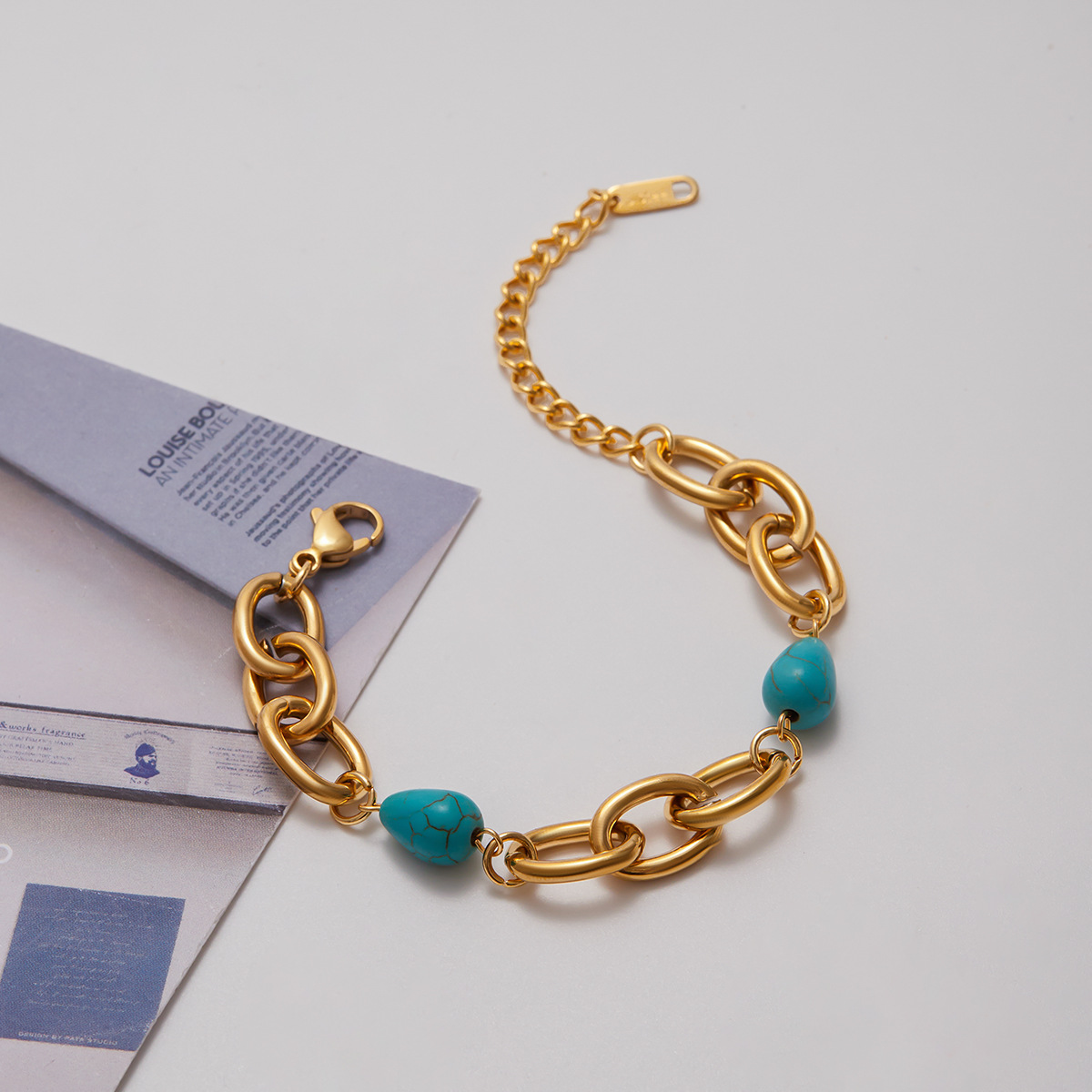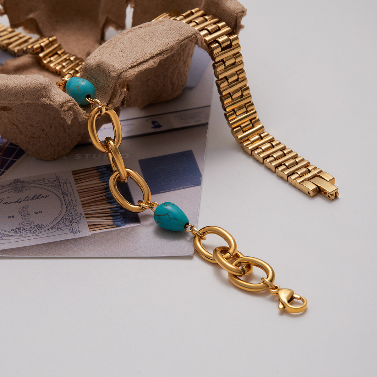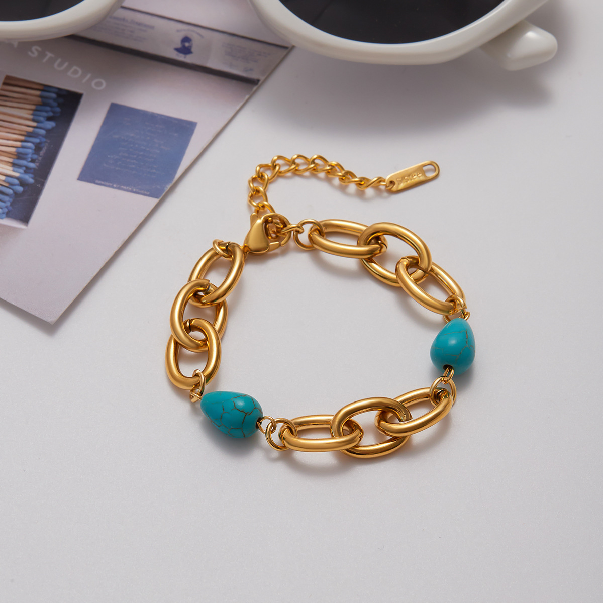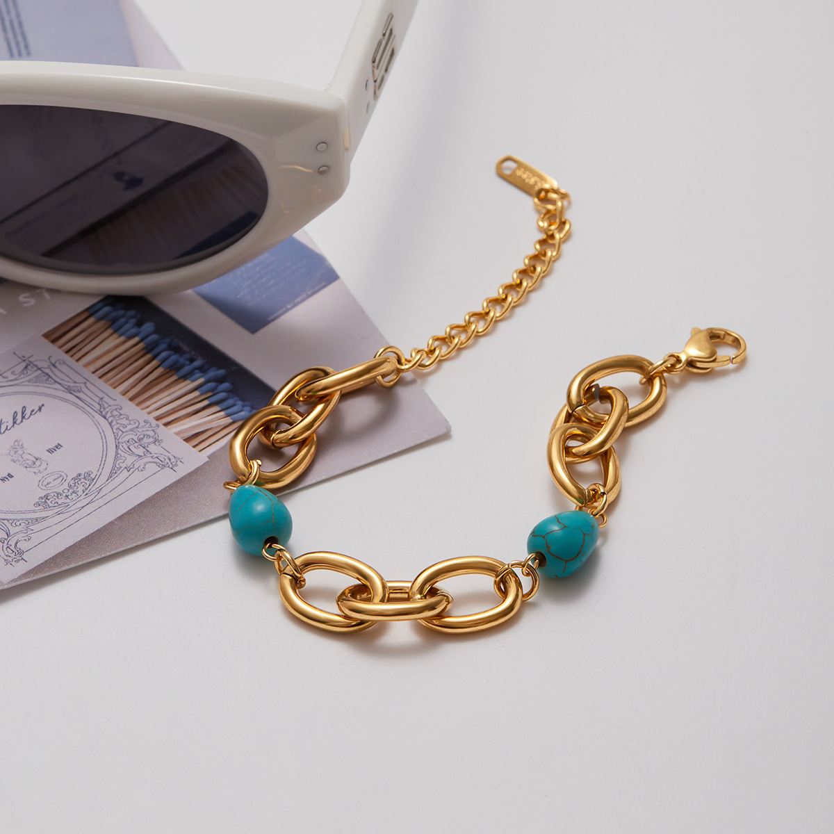 Bracciale gioielli in acciaio inossidabile, 304 acciaio inox, with turchese, placcato, gioielli di moda & stili diversi per la scelta & per la donna, dorato, Venduto da PC