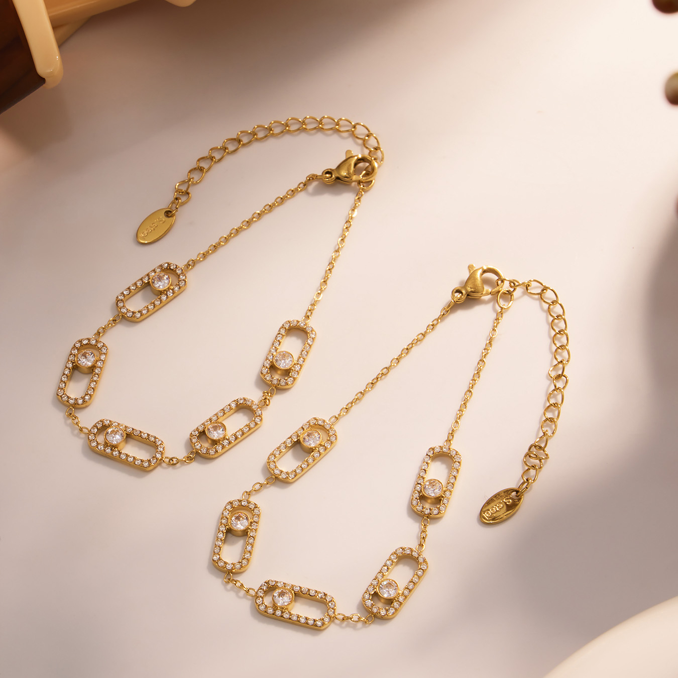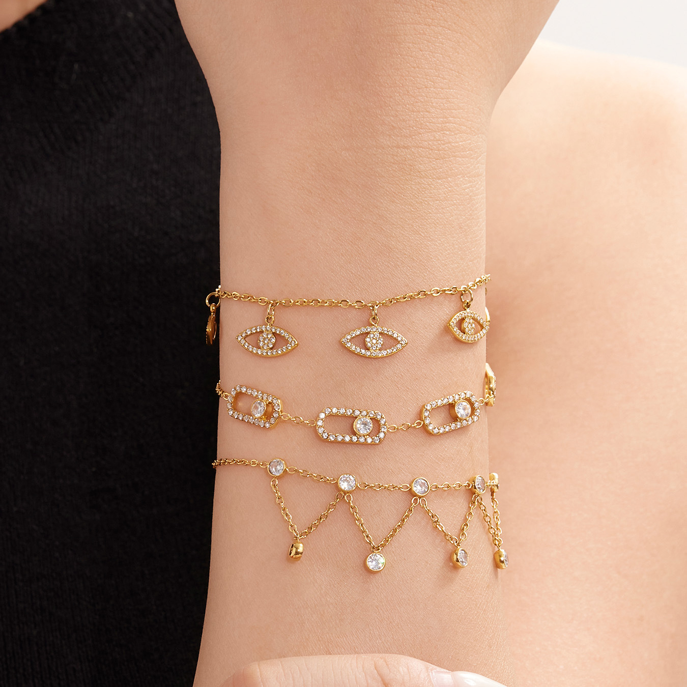 Bracciale gioielli in acciaio inossidabile, 304 acciaio inox, with cubico zircone, laccato oro 18K, materiali diversi per la scelta & formato differente per scelta & per la donna & cavo, Venduto da PC