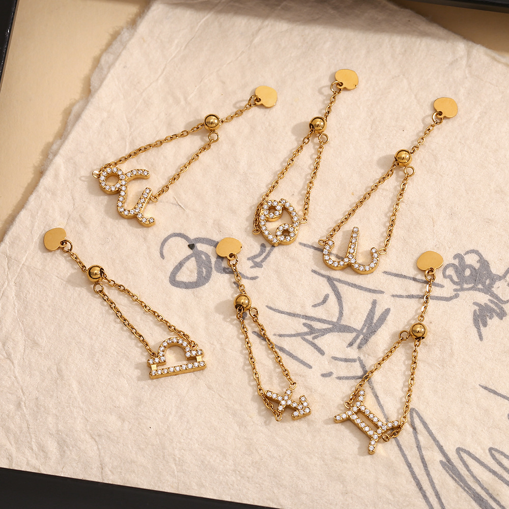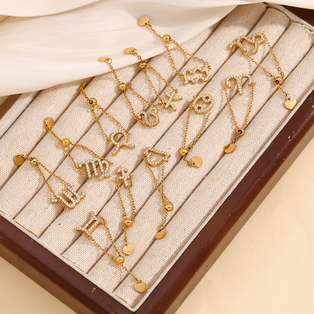 Bracciale gioielli in acciaio inossidabile, 304 acciaio inox, Placcato oro 18K, gioielli costellazione & diversi modelli per la scelta & per la donna & con strass, Venduto da PC