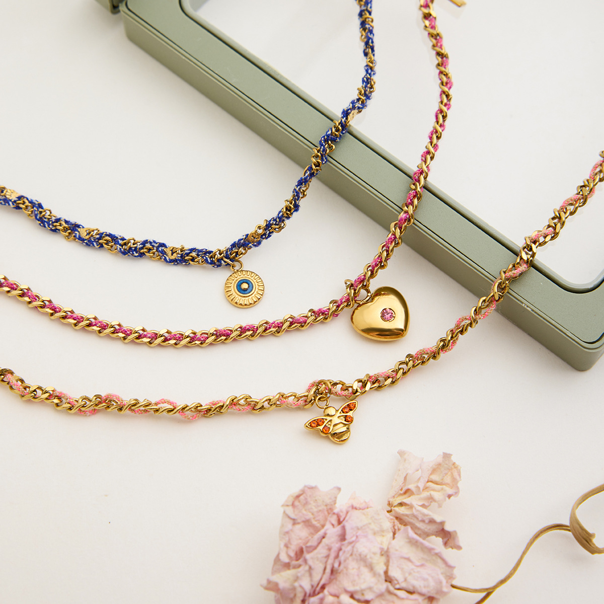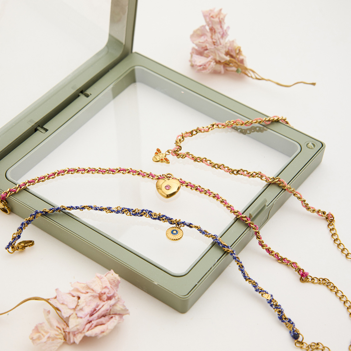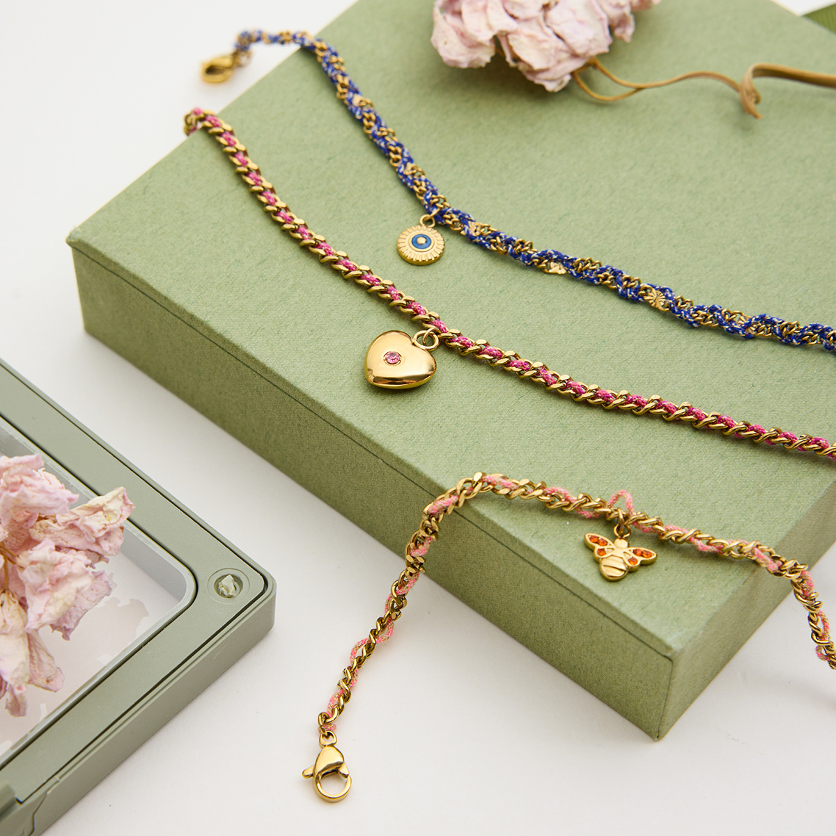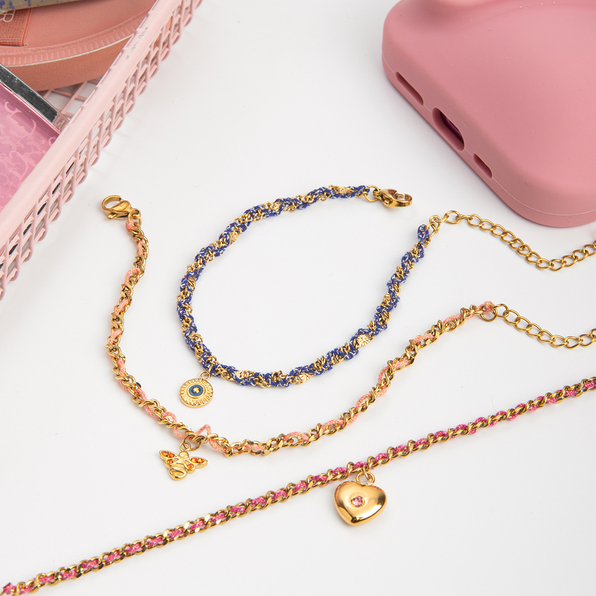 Bracciale gioielli in acciaio inossidabile, 304 acciaio inox, with corda di terilene, Placcato oro 18K, fatto a mano & stili diversi per la scelta & per la donna & con strass, dorato, Venduto da PC