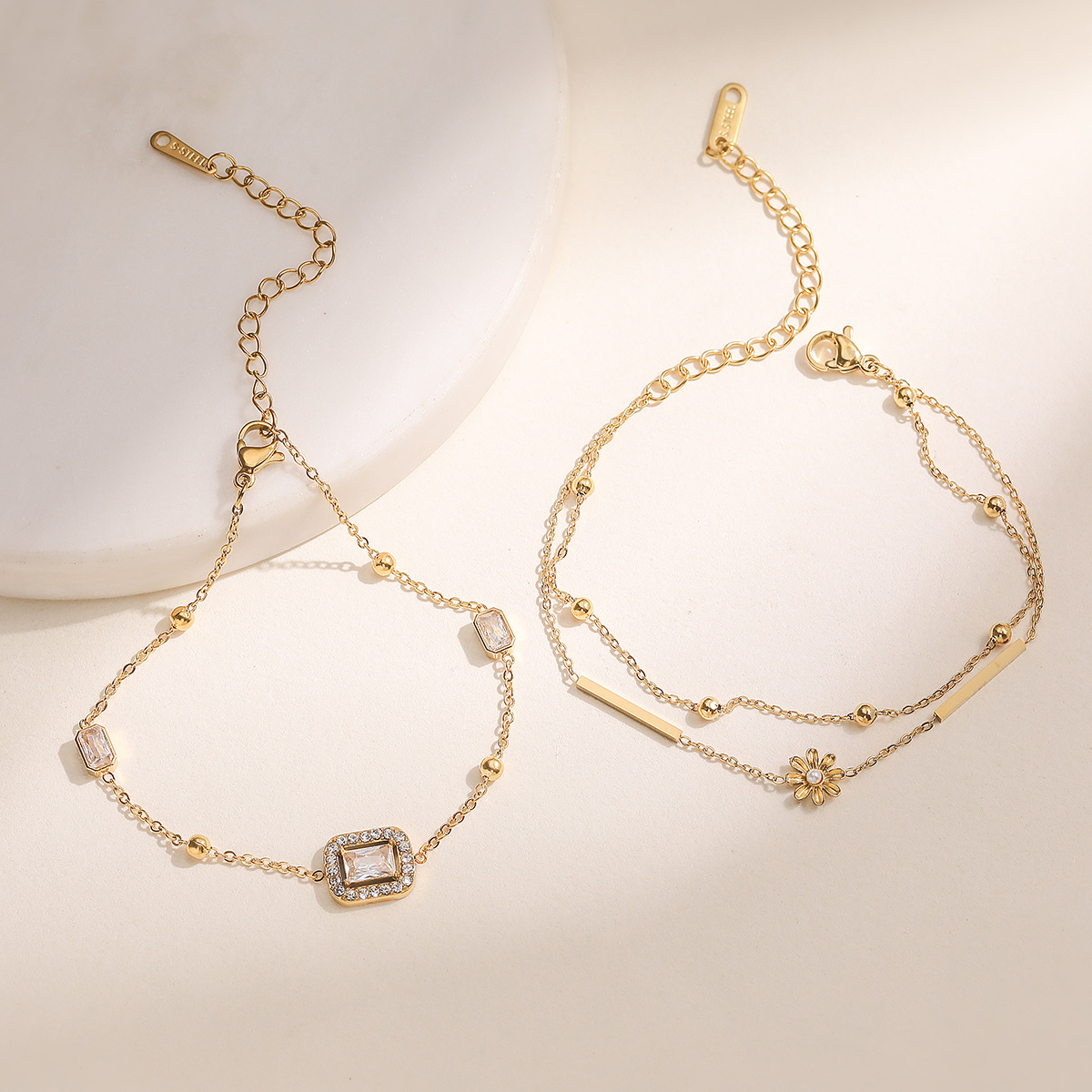 Bracciale gioielli in acciaio inossidabile, 304 acciaio inox, with cubico zircone, Placcato oro 18K, stili diversi per la scelta & per la donna, Venduto da PC