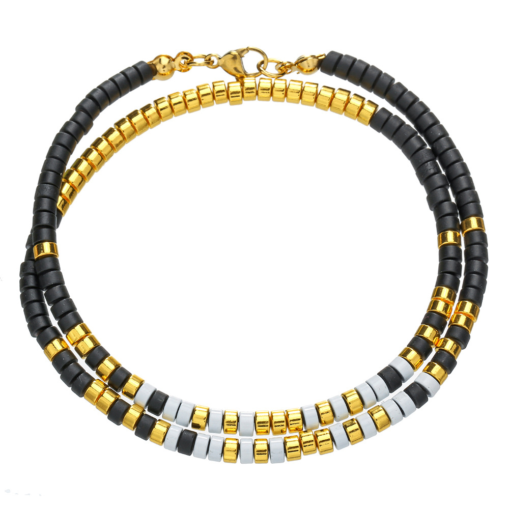 Bracciale gioielli in acciaio inossidabile, 304 acciaio inox, with Ematite, placcato color oro, Doppio strato & gioielli di moda, nessuno, Venduto da PC