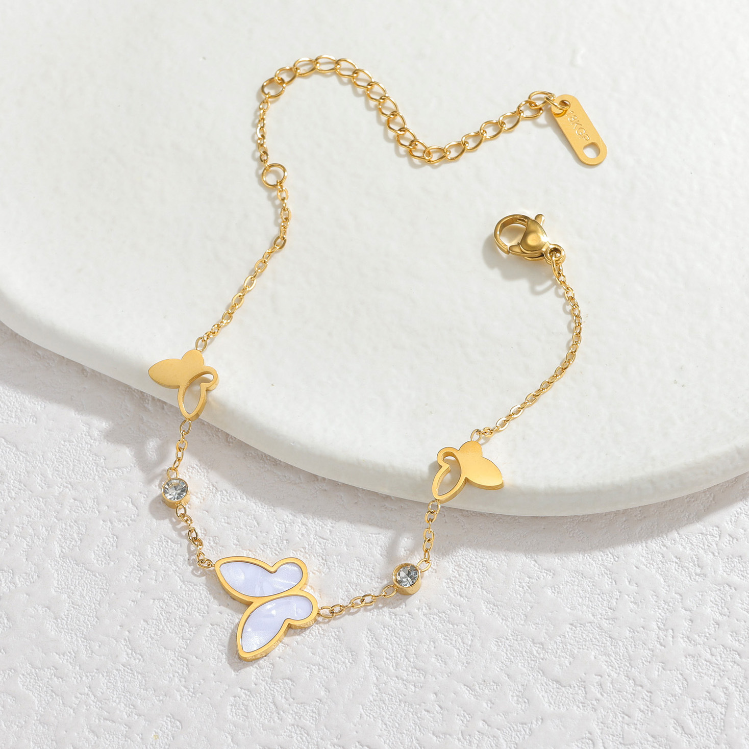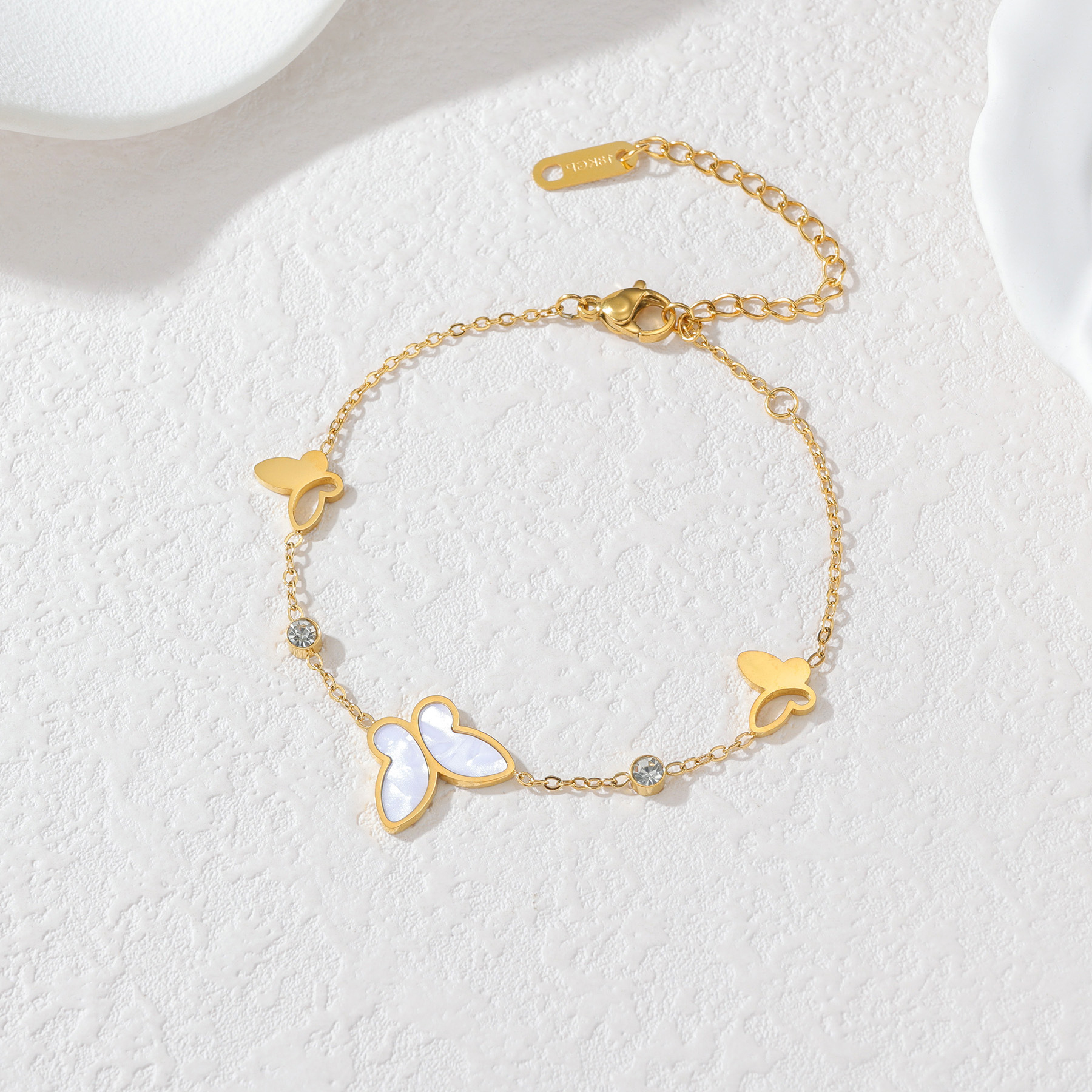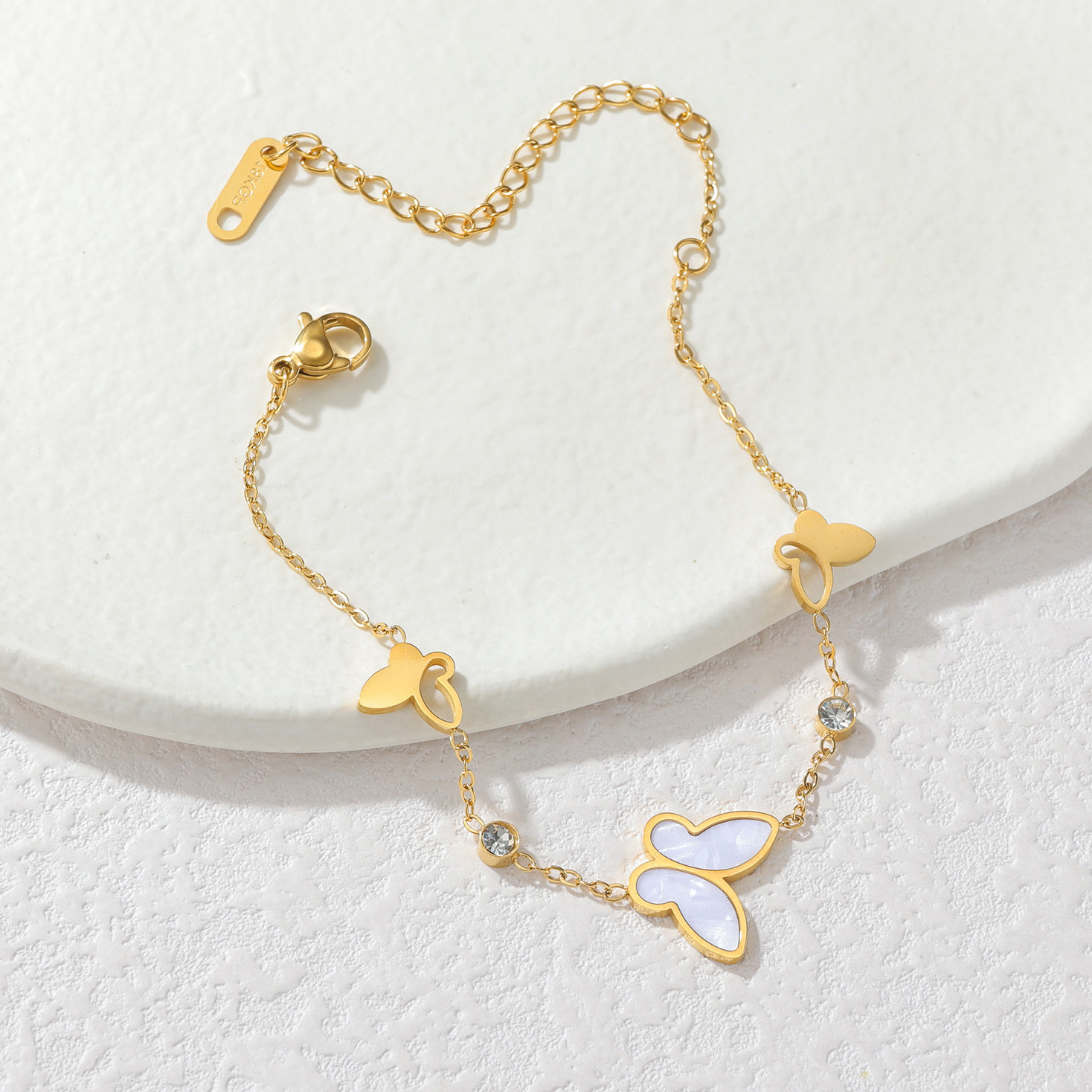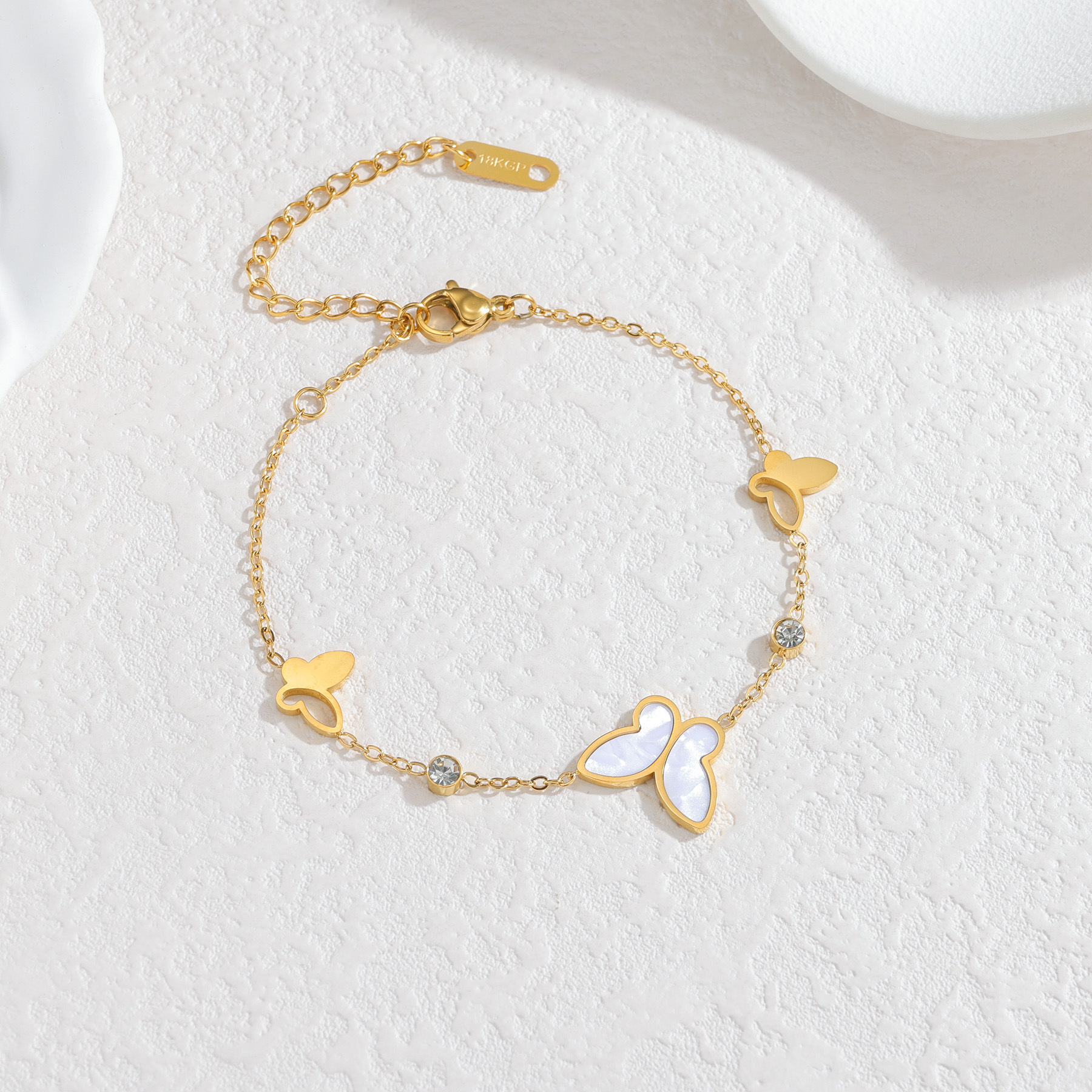 Bracciale gioielli in acciaio inossidabile, 304 acciaio inox, with bianco conchiglia, placcato, per la donna & con strass & cavo, dorato, Venduto da PC