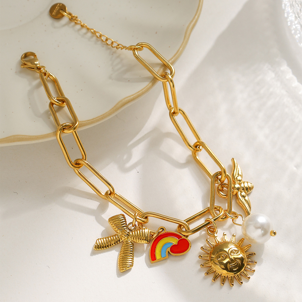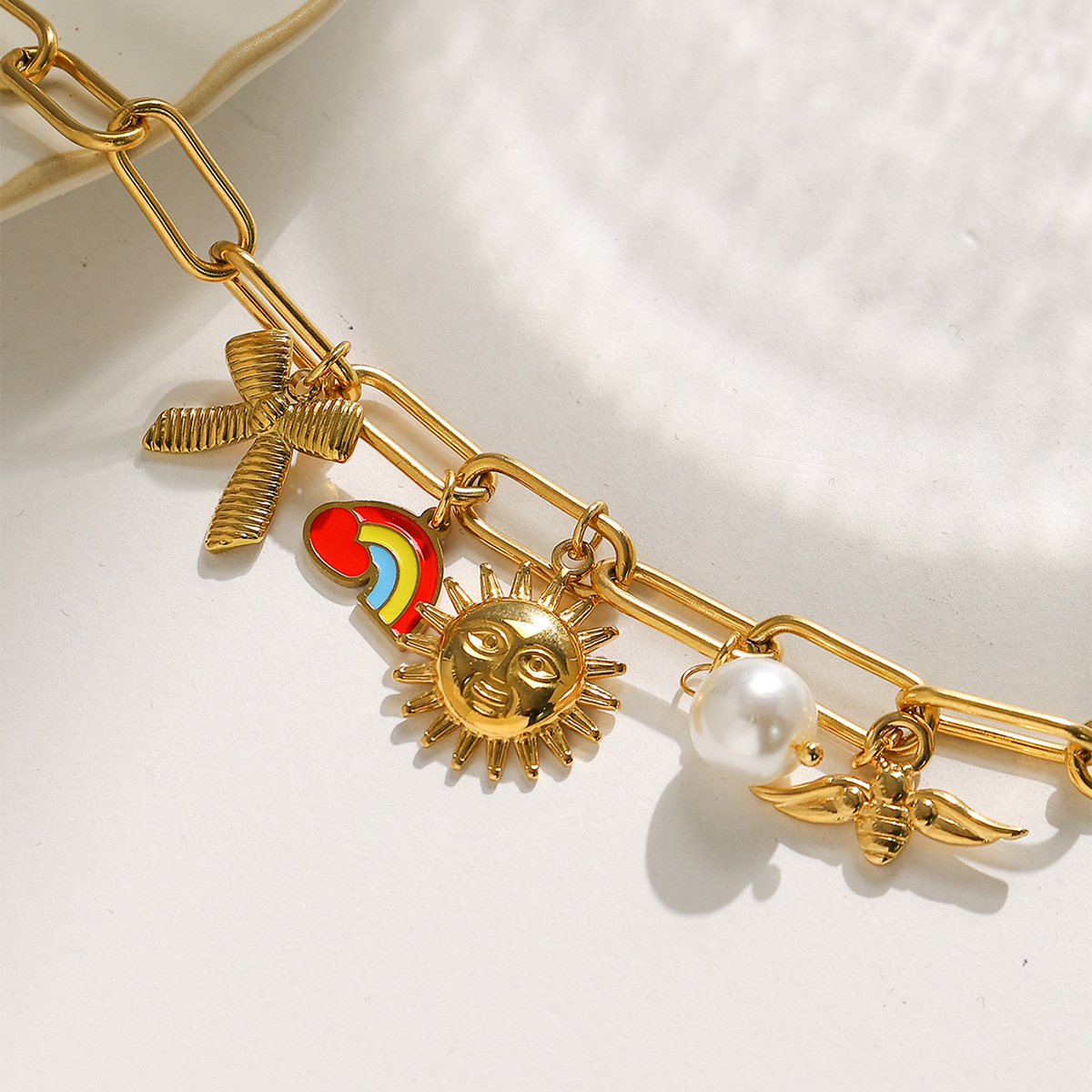 Bracciale gioielli in acciaio inossidabile, 304 acciaio inox, with perla in plastica, placcato, stili diversi per la scelta & per la donna & smalto, dorato, Venduto da PC