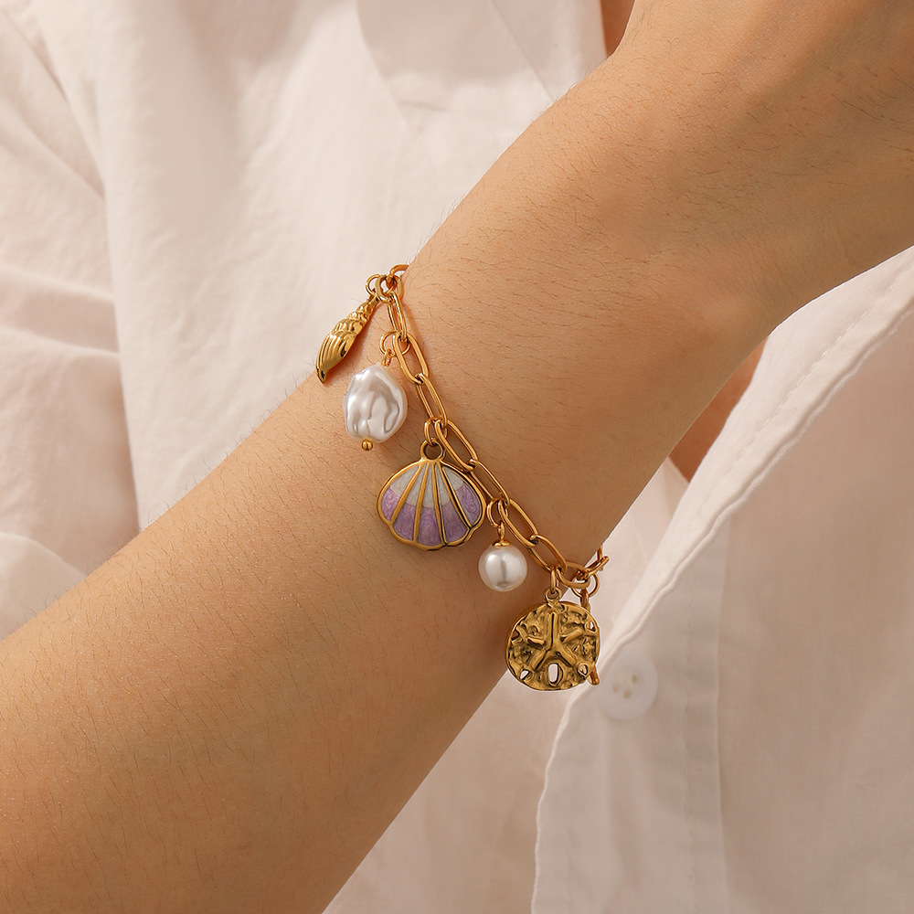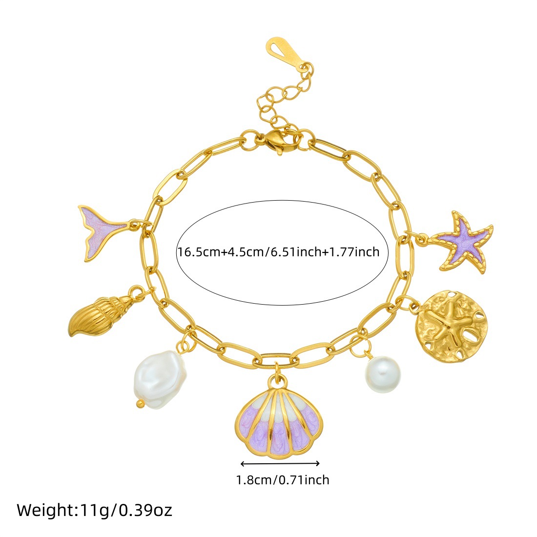 Bracciale gioielli in acciaio inossidabile, 304 acciaio inox, with conchiglia & perla in plastica, placcato, gioielli di moda & per la donna & smalto, dorato, Venduto da PC